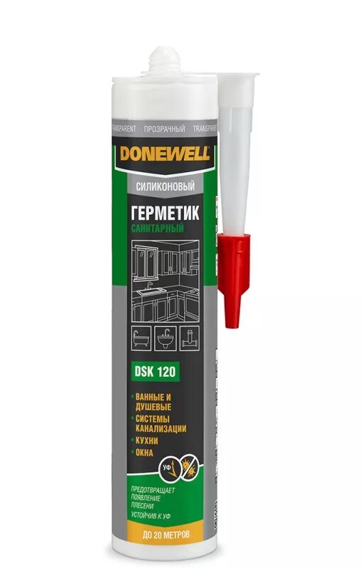 Герметик силиконовый DONEWELL санитарный DST-120, для ванной и кухни, с добавкой против плесени, прозрачный, 40 мл