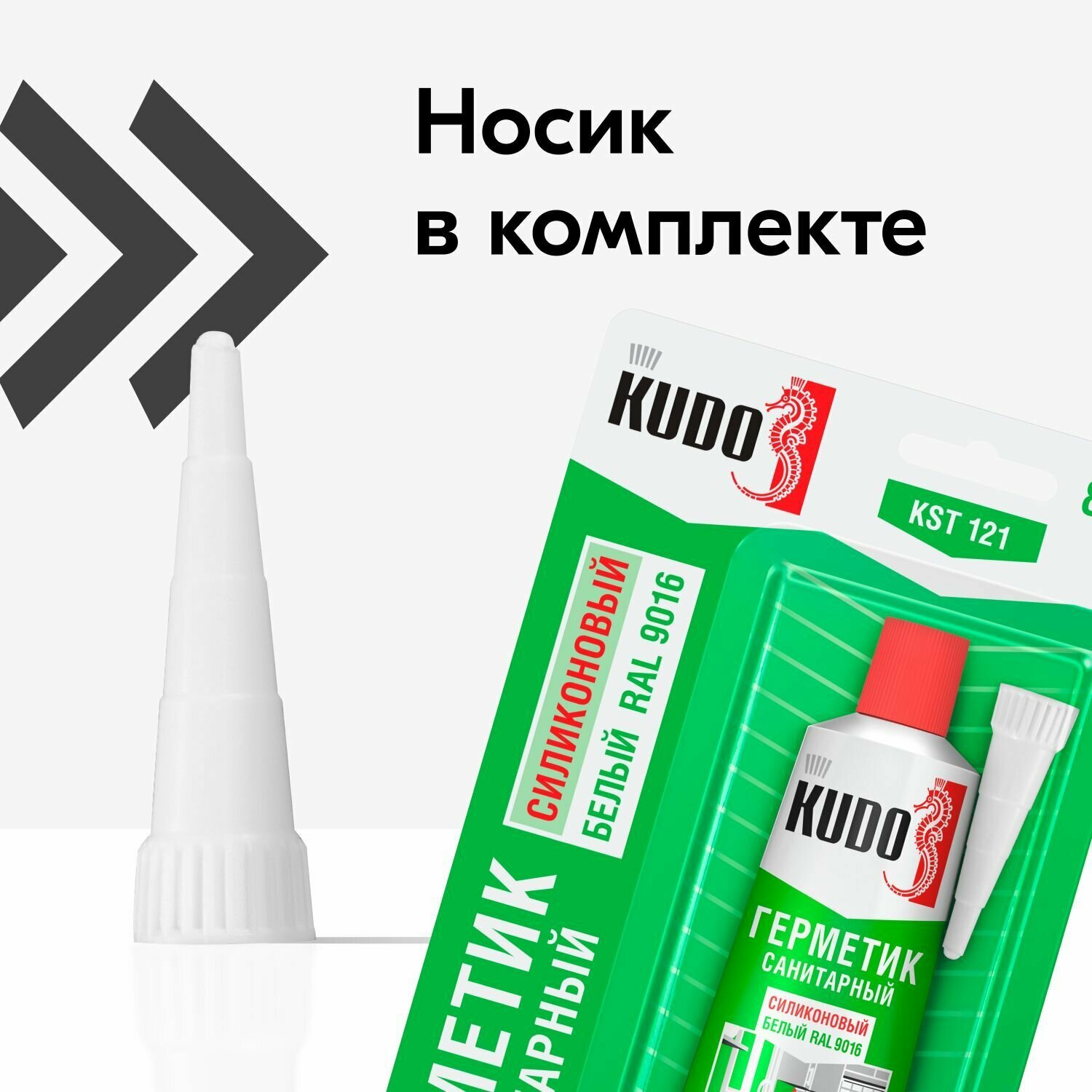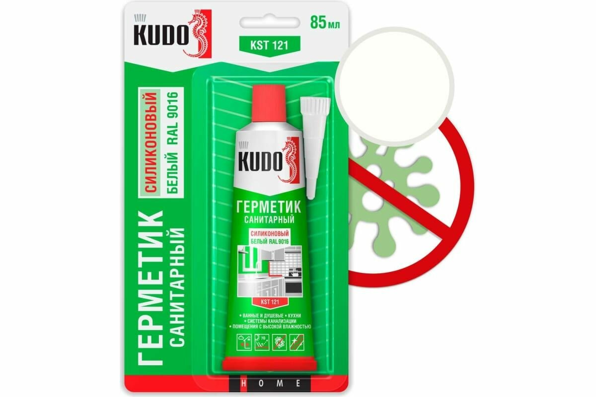 Герметик силиконовый, санитарный, KUDO, KST-121, 85 мл, белый