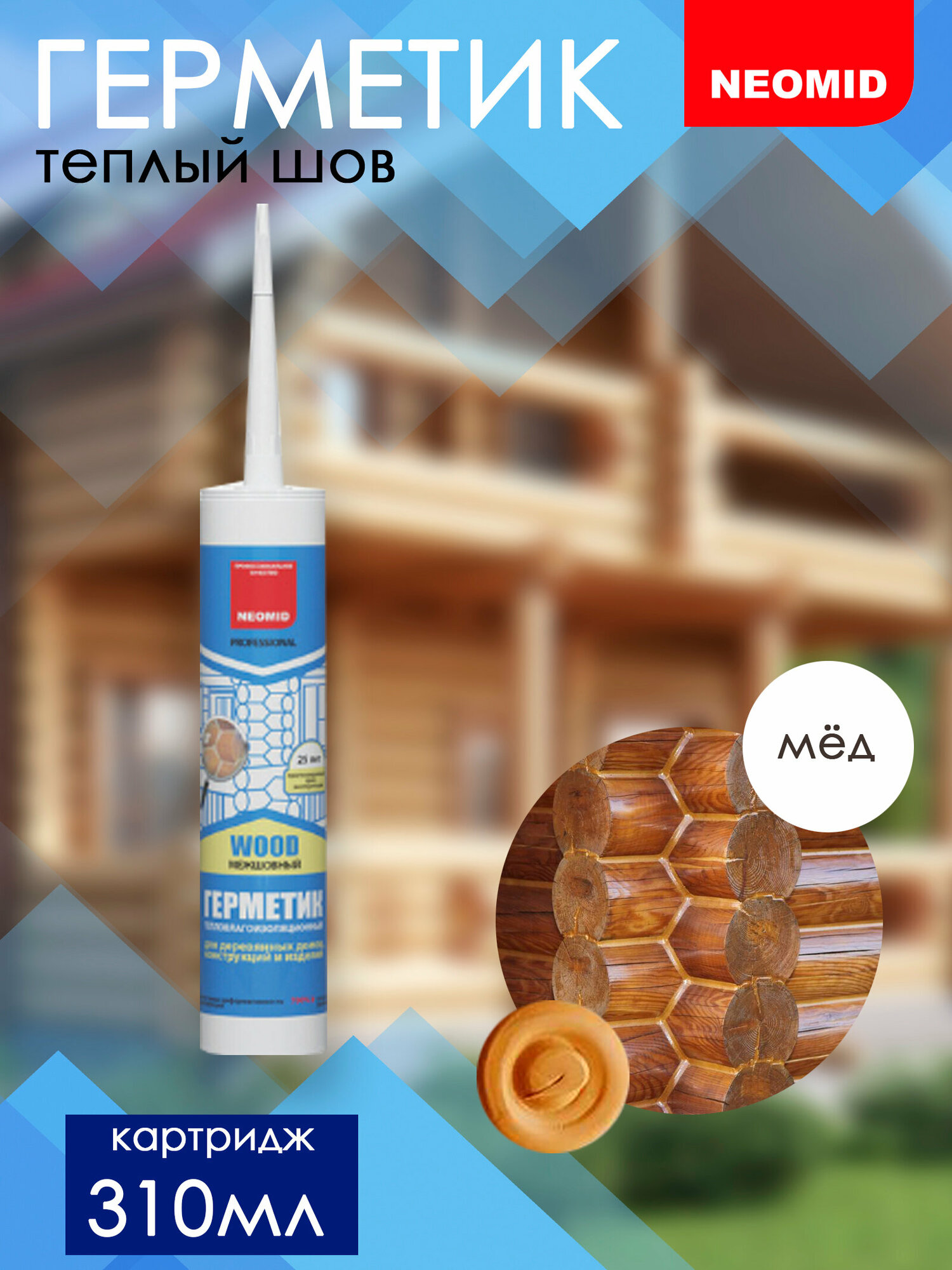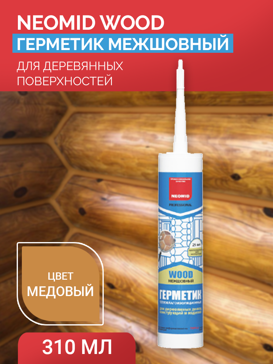 Герметик NEOMID теплый дом межшовный, для деревянных поверхностей 600 мл. МЕДОВЫЙ