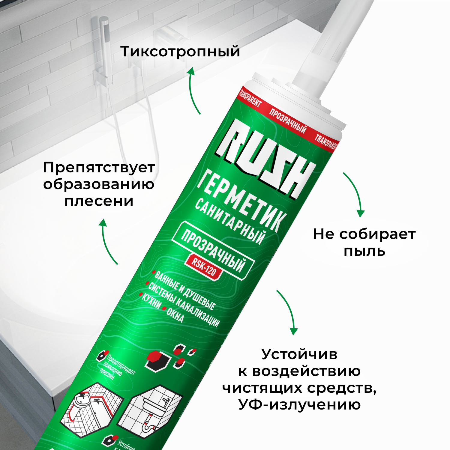 Герметик силиконовый санитарный RUSH, прозрачный, RSK-120 интересное: