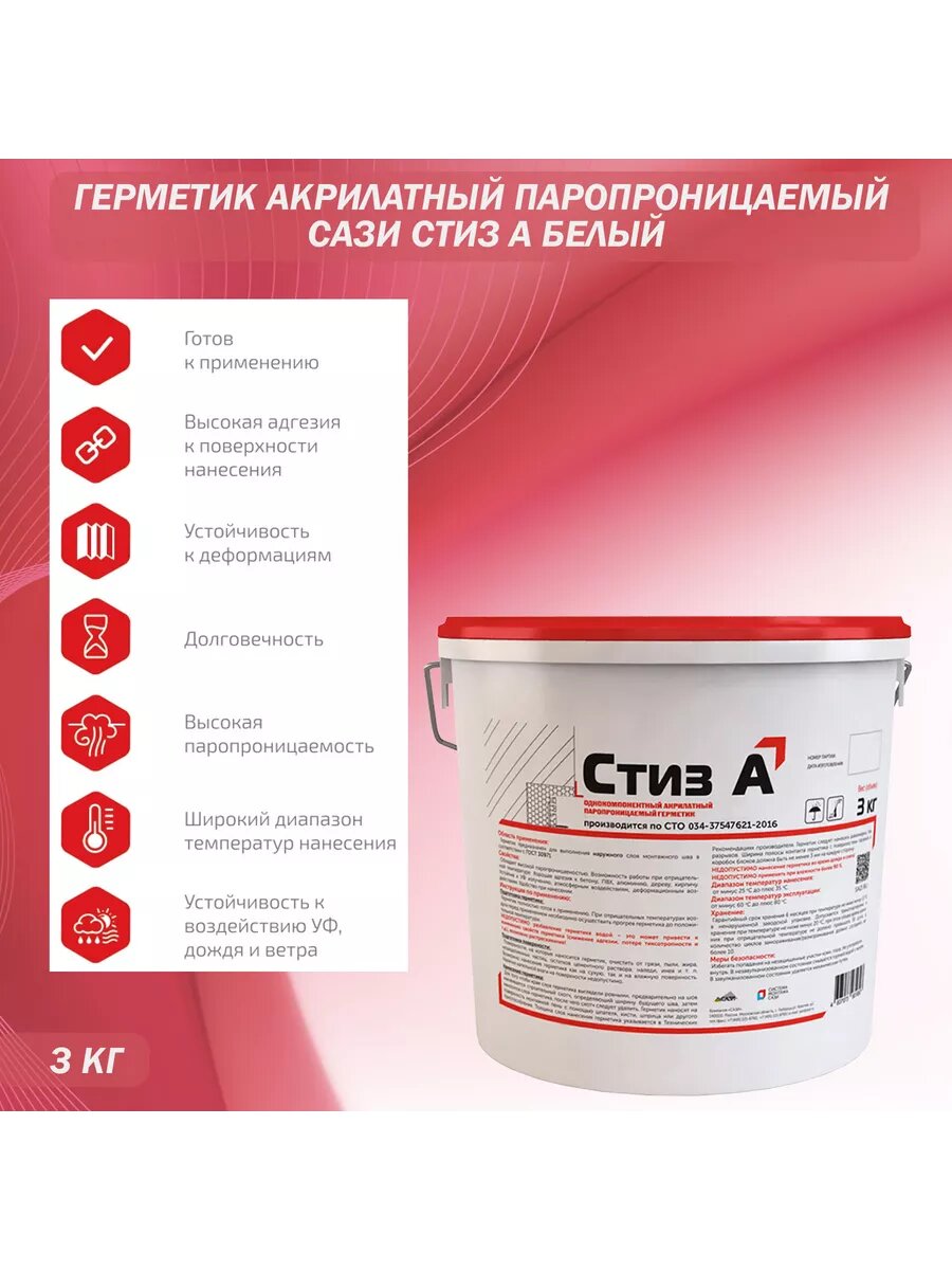 Акрилатный паропроницаемый герметик стиз А, 3 кг
