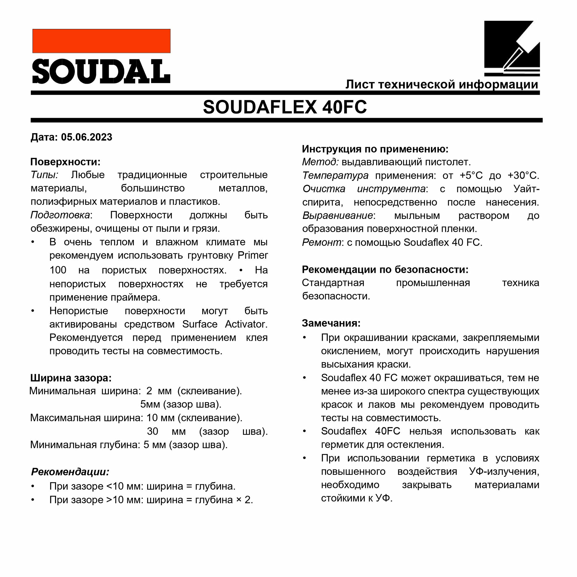 Soudal soudalflex 40 FC клей-герметик полиуретановый (коричневый, 600 мл, 1шт)