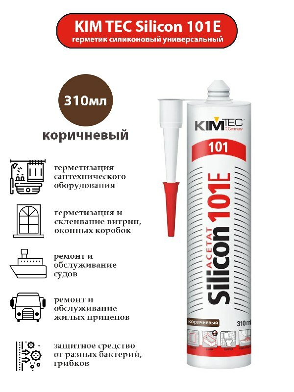 Герметик силиконовый универсальный Kim Tec 101Е «», коричневый, 310 мл