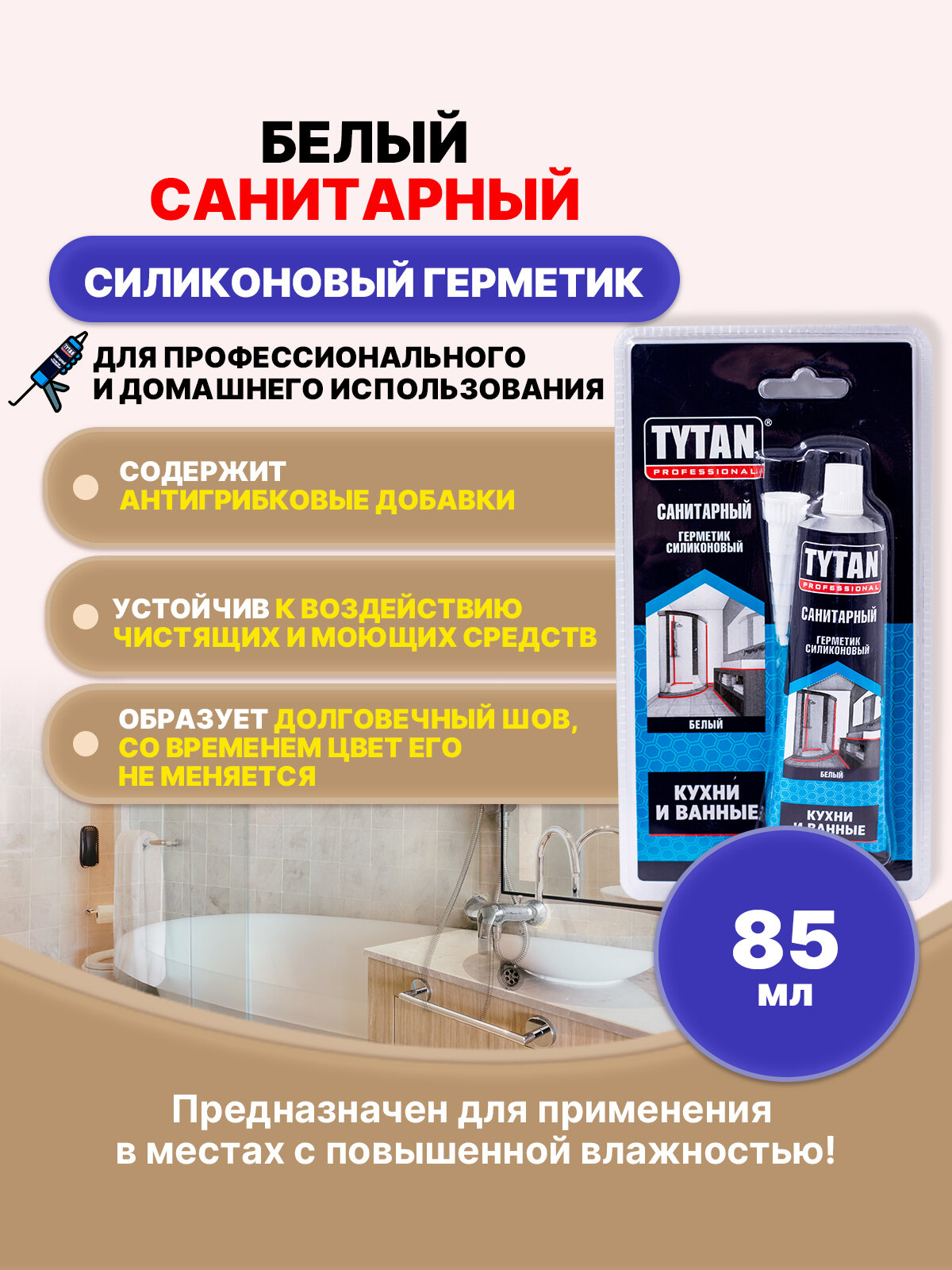 Силиконовый санитарный герметик Tytan Professional, 85 мл, белый