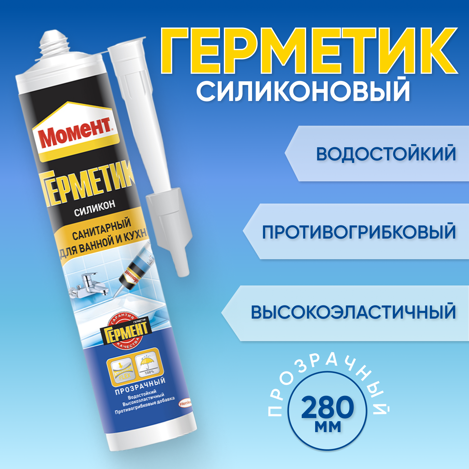 Момент Санитарный для ванной и кухни герметик прозрачный (0,28л) / MOMENT Санитарный для ванной и кухни герметик силиконовый прозрачный (280мл)