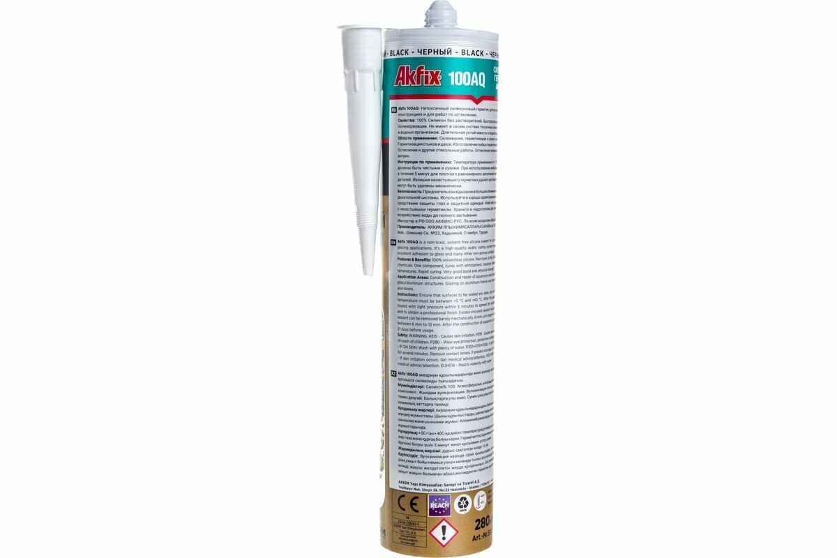 Купить Akfix 100AQ, однокомпонентный силиконовый герметик черный, для аквариумов, для окон, для вентиляции, 280мл
