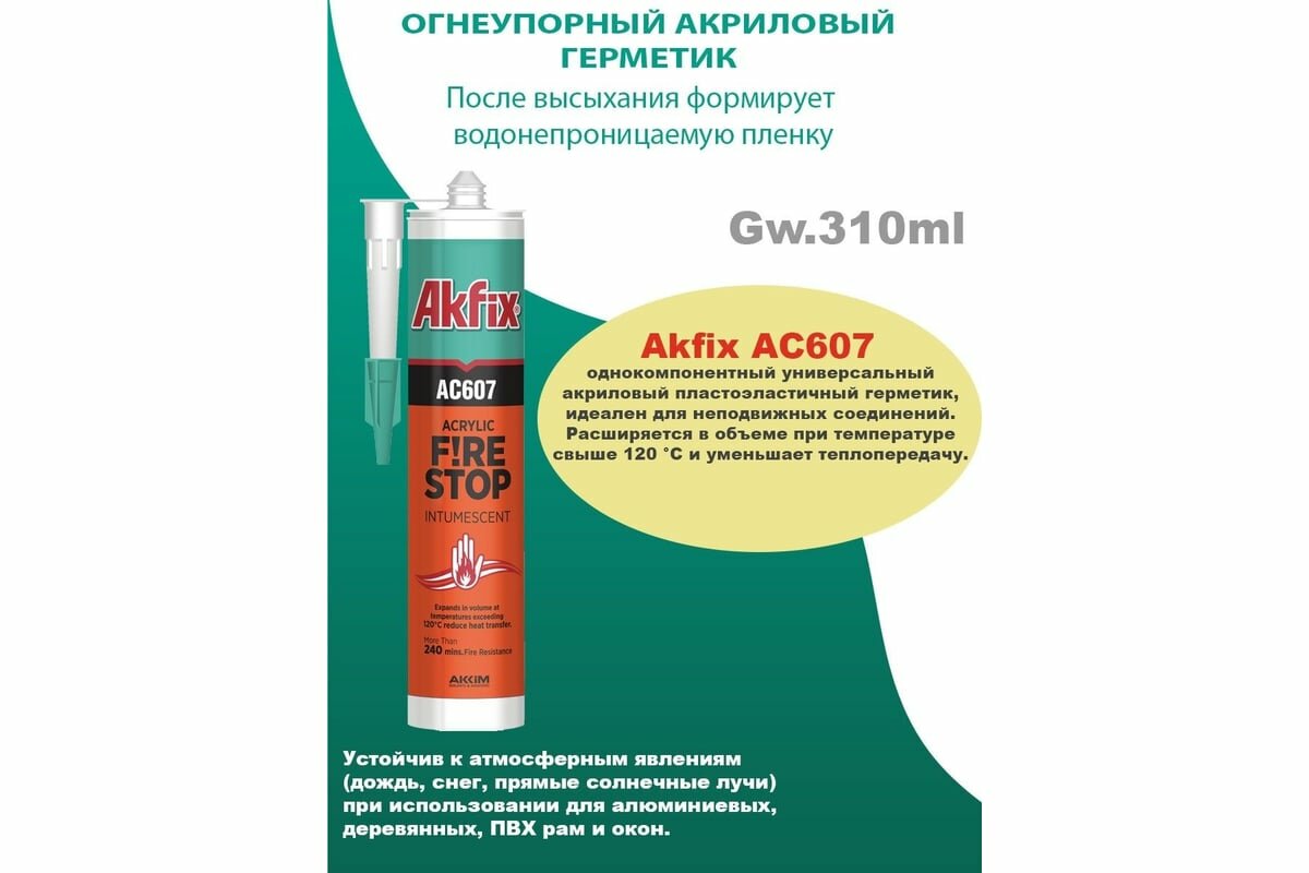 Akfix AC607 Огнестойкий акриловый герметик, 310 мл, Белый (1 шт)