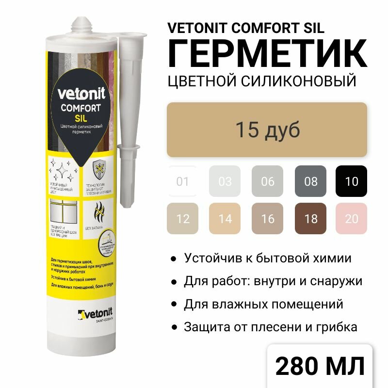 Герметик силиконовый Vetonit Comfort Sil 280 мл, 15 дуб