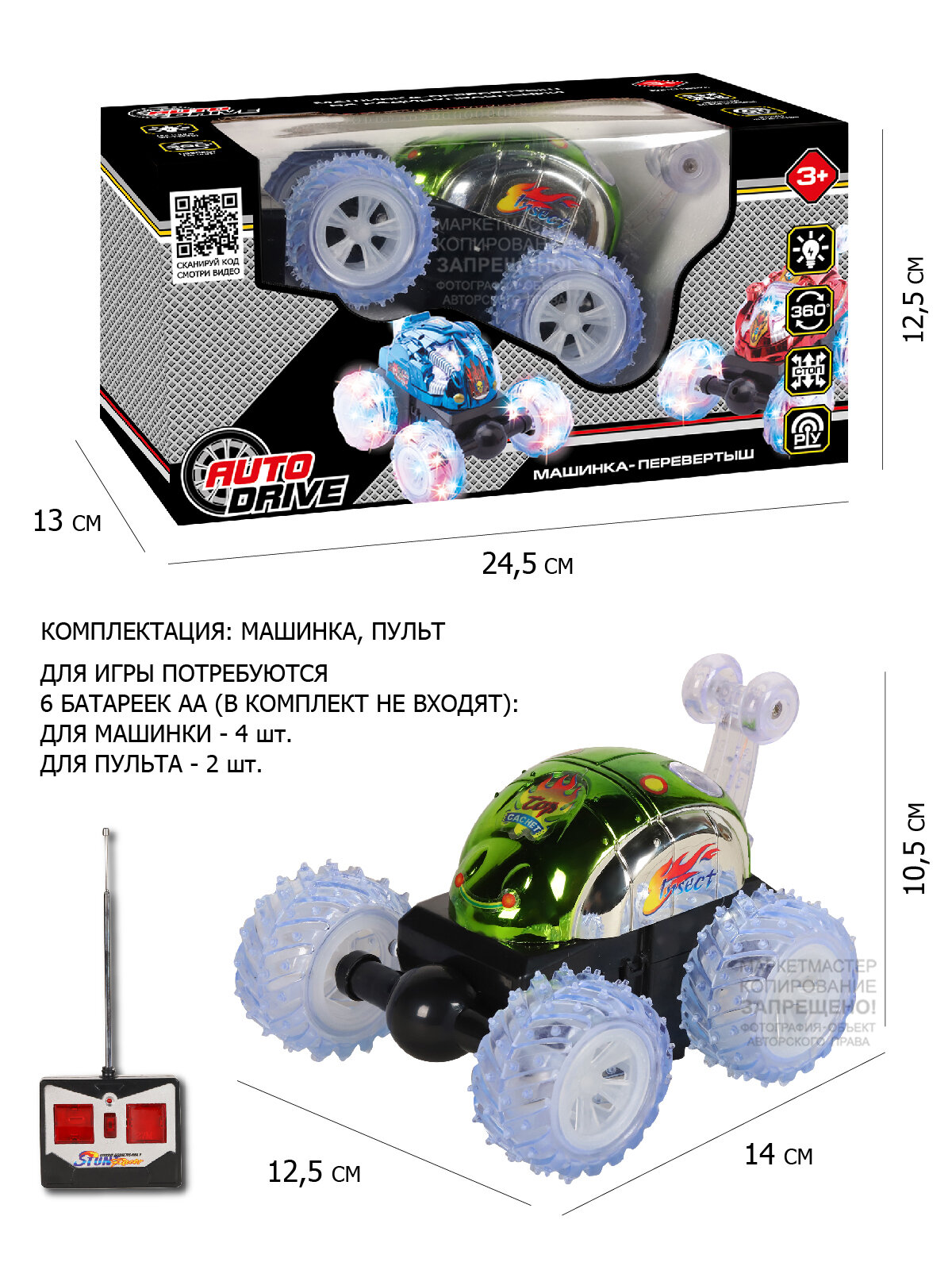 Купить Игрушка на радиоуправлении AUTODRIVE перевертыш 4 канала для выполнения трюков подсветка корпуса с пультом JB1168168