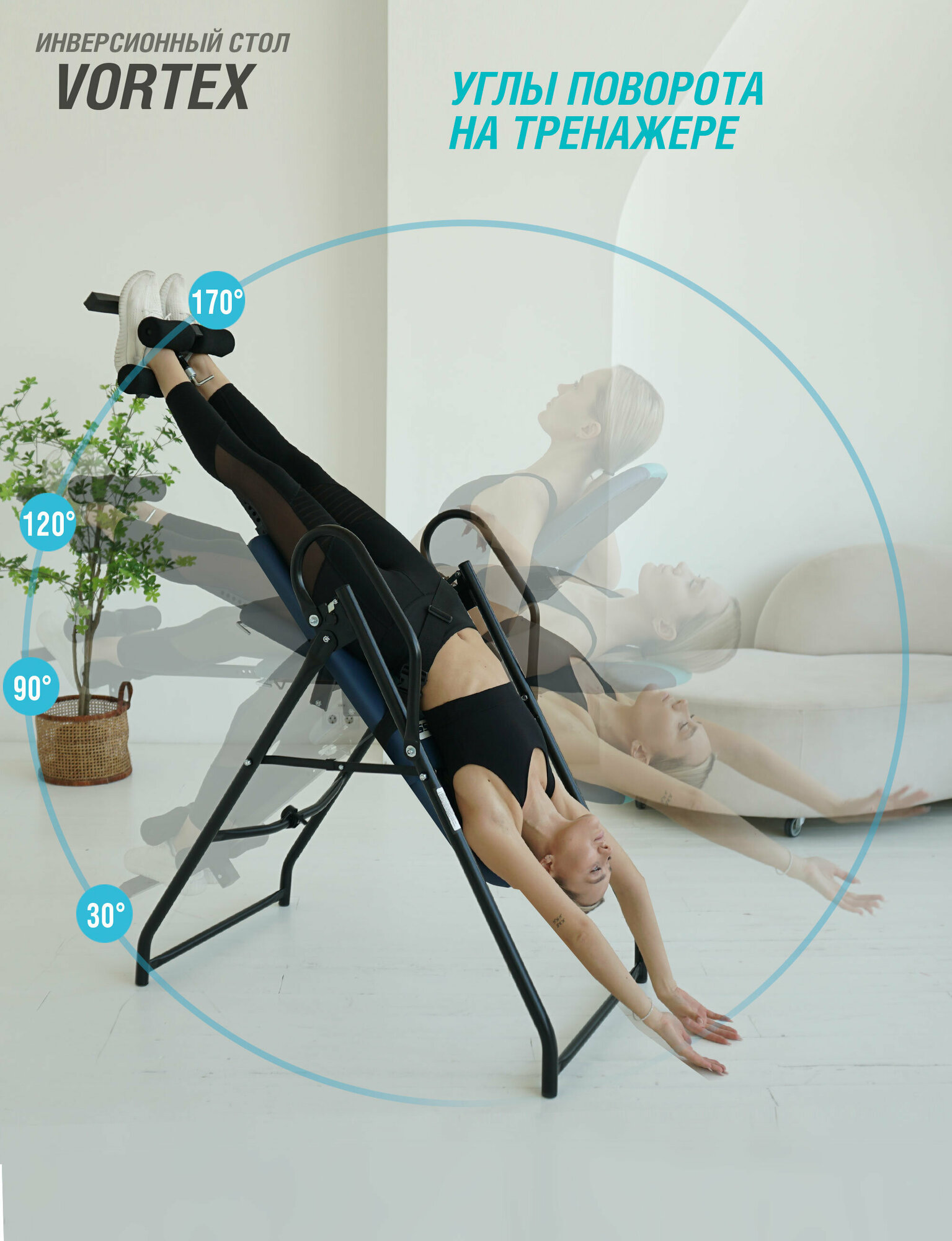 Инверсионный стол Vortex С подушкой для спины, позвоночника, тренажер от боли в спине, цвет сине-бирюзовый интересное: