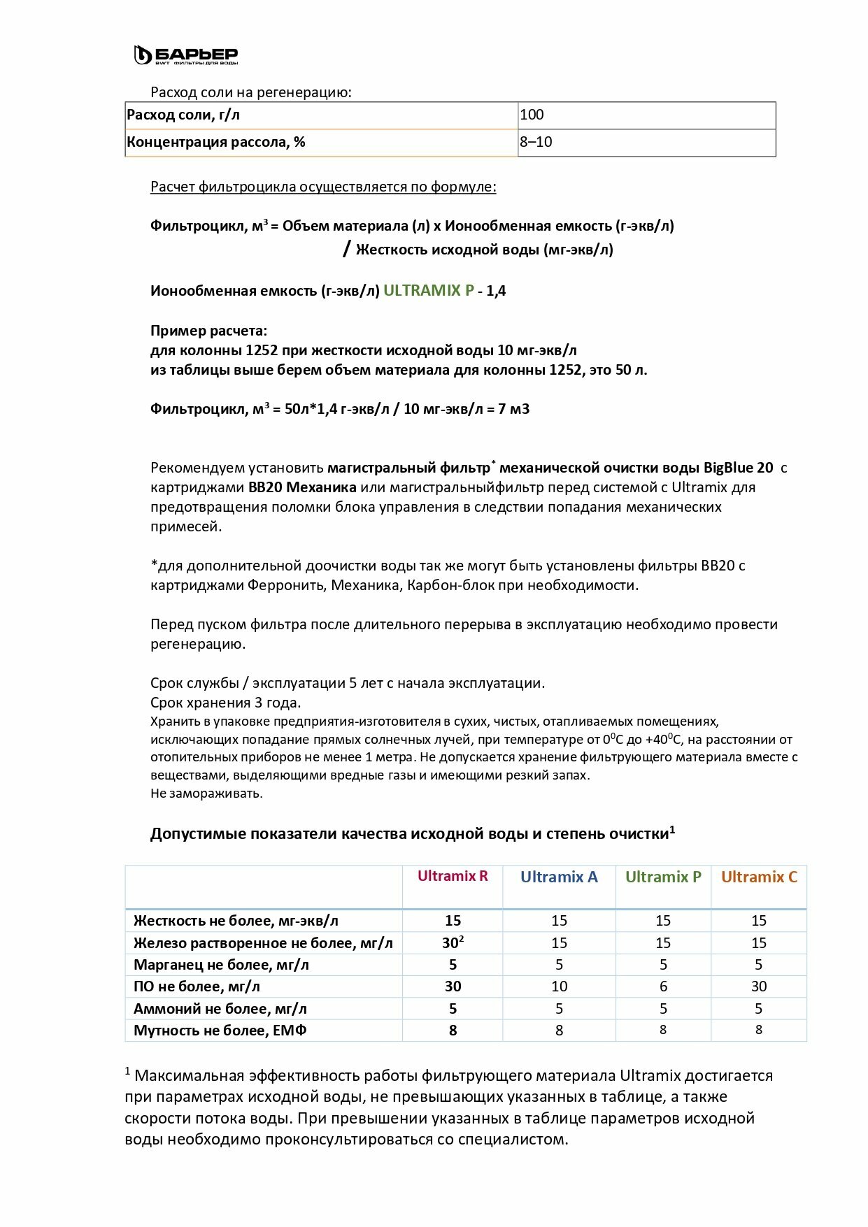 | Дополнительная информация | применяется для очистки воды с повышенным содержанием железа и жесткости и низкой перманганатной окисляемостью не более 5 мгО/л в составе коттеджных систем. |