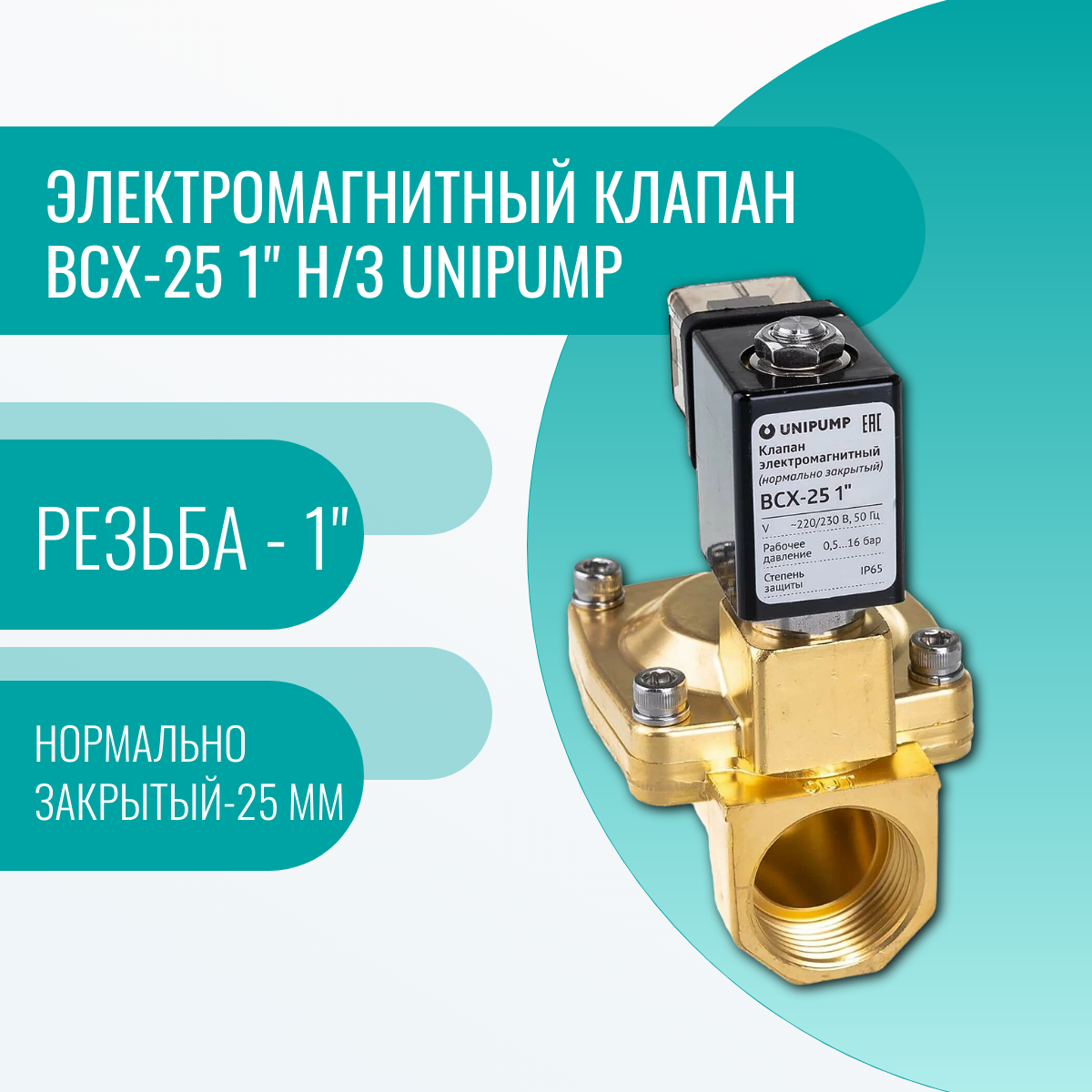 Клапан электромагнитный UNIPUMP BCX-25 1"
