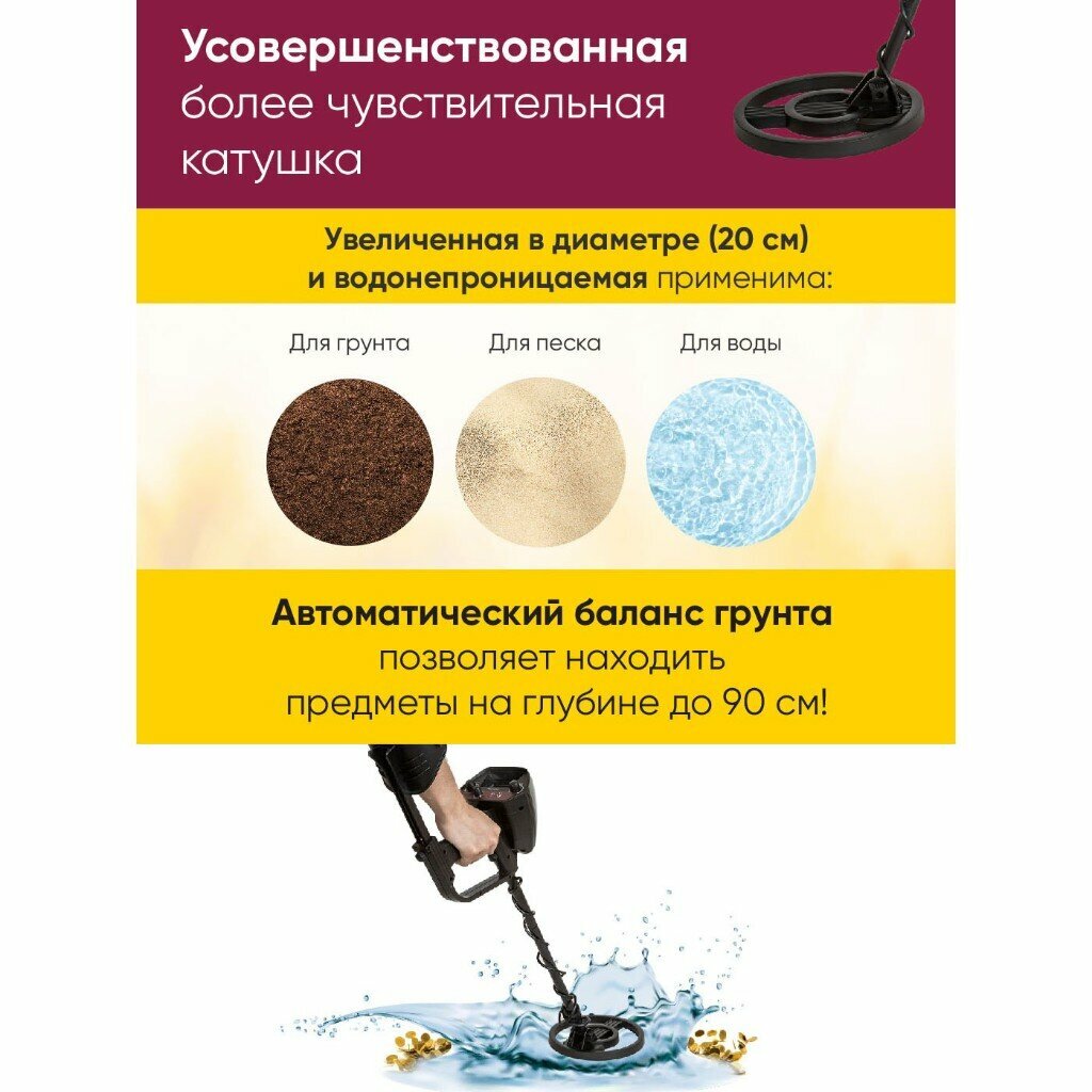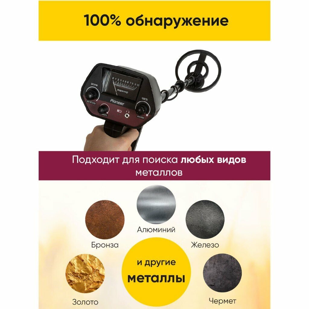 Металлоискатель грунтовый Pioneer MD-5090 для поиска золота, монет, черных металлов, 2 режима, автобаланс грунта, регулируемая высота 80-108 см