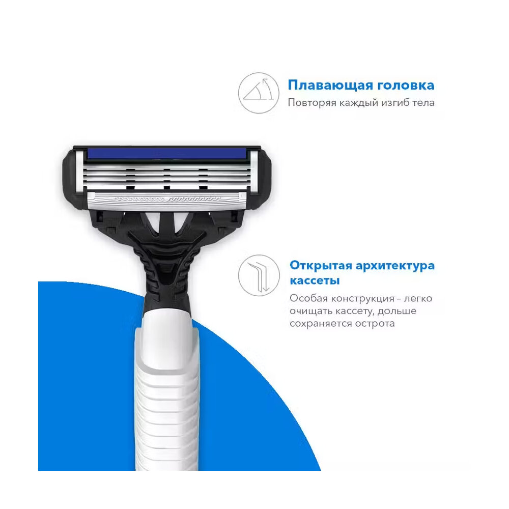 | Дополнительная информация | эргономичная прорезиненная ручка; увлажняющая полоска; микрогребни; защитный колпачок на бреющей головке |