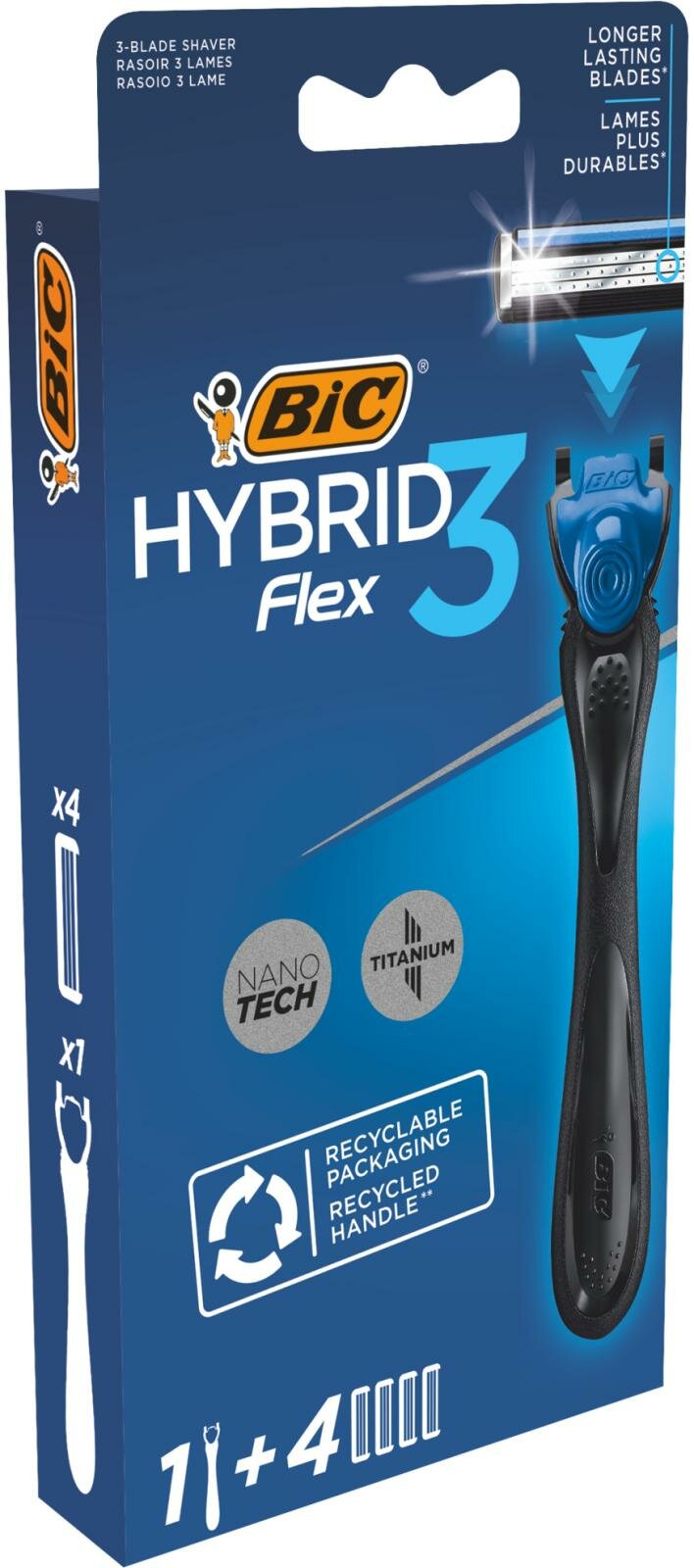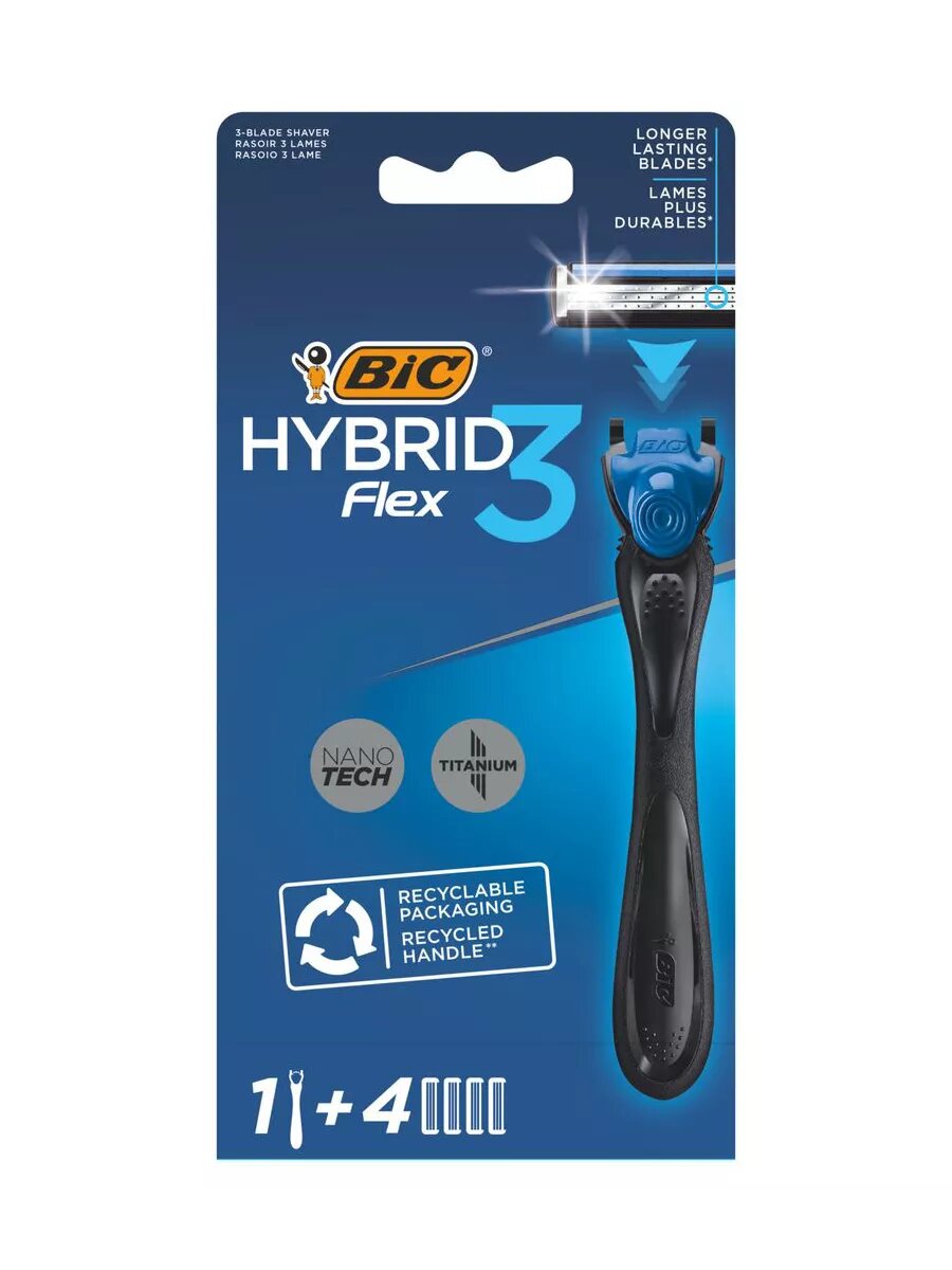 Бритва мужская, BIC Hybrid 3 Flex, 1 ручка и 4 сменные кассеты