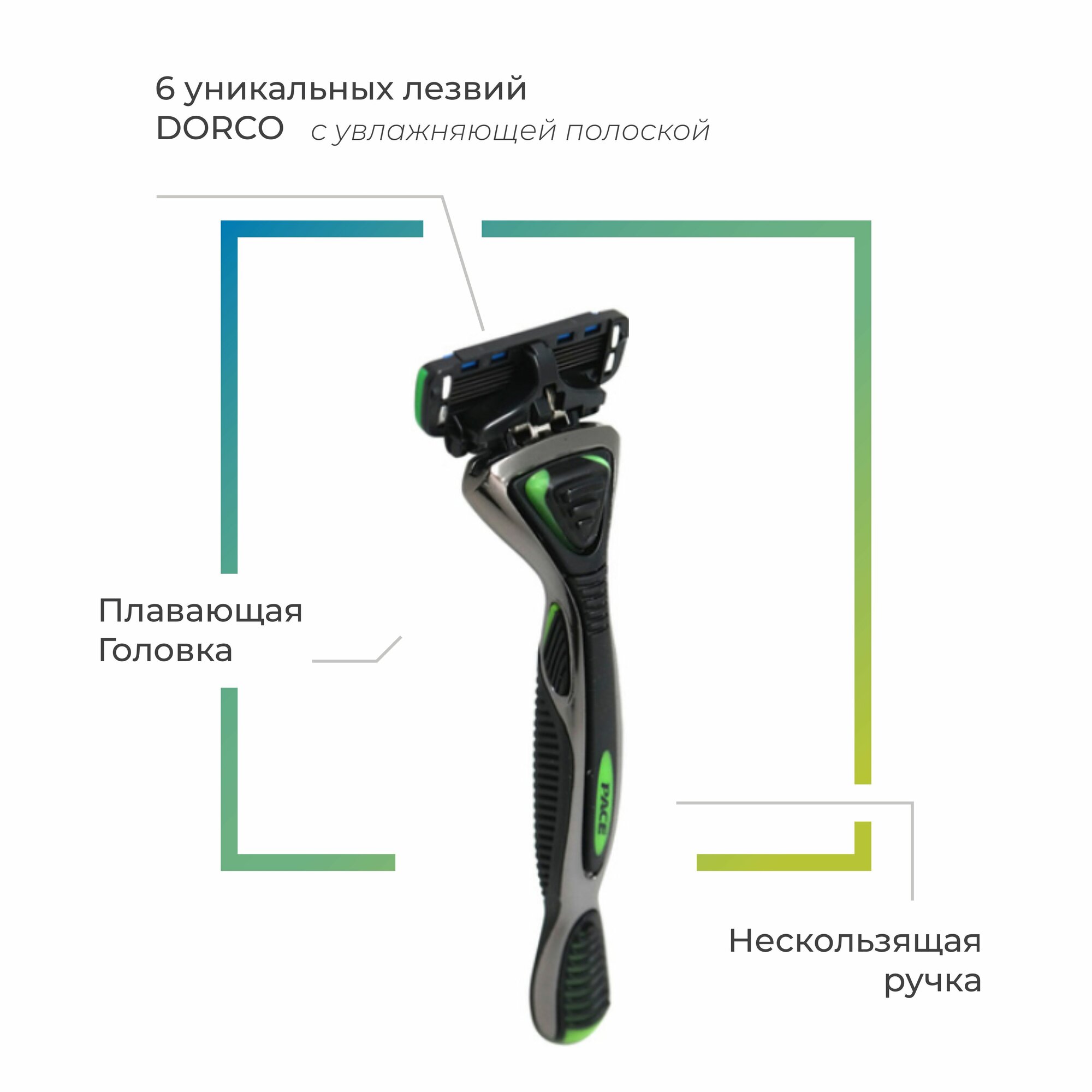 DORCO Мужской станок Pace 6, SXA1002, станок, 2 кассеты, система с 6 лезвиями