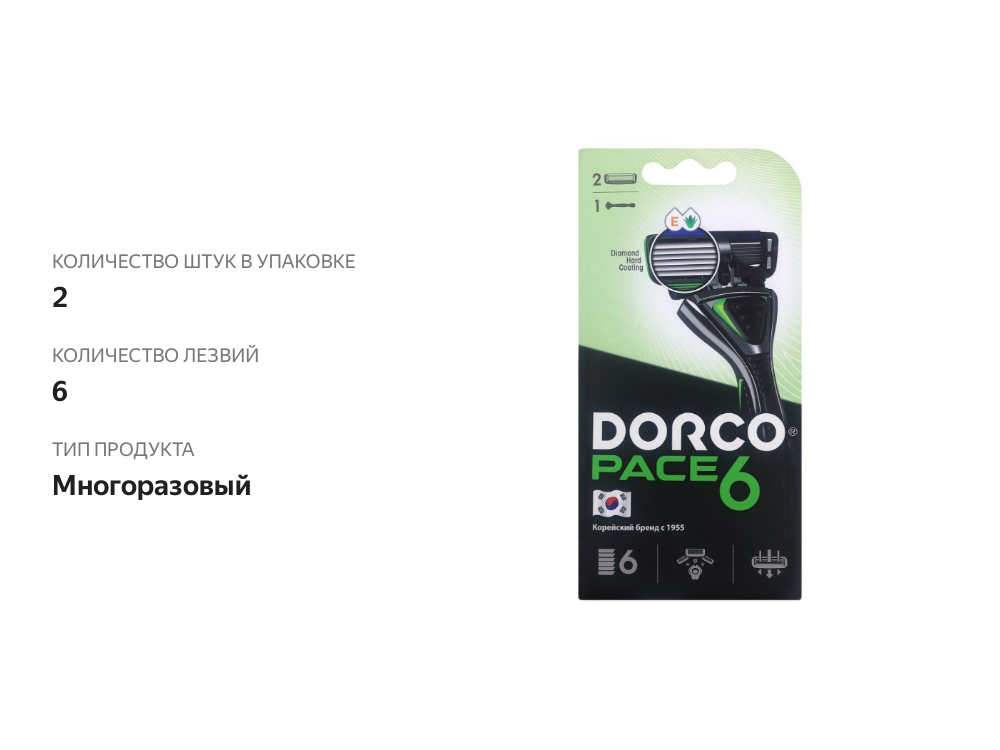 Бритвенный станок Dorco PACE6 (1 станок, 2 кассеты), 6 лезвий, плав.головка, крепление PACE интересное: