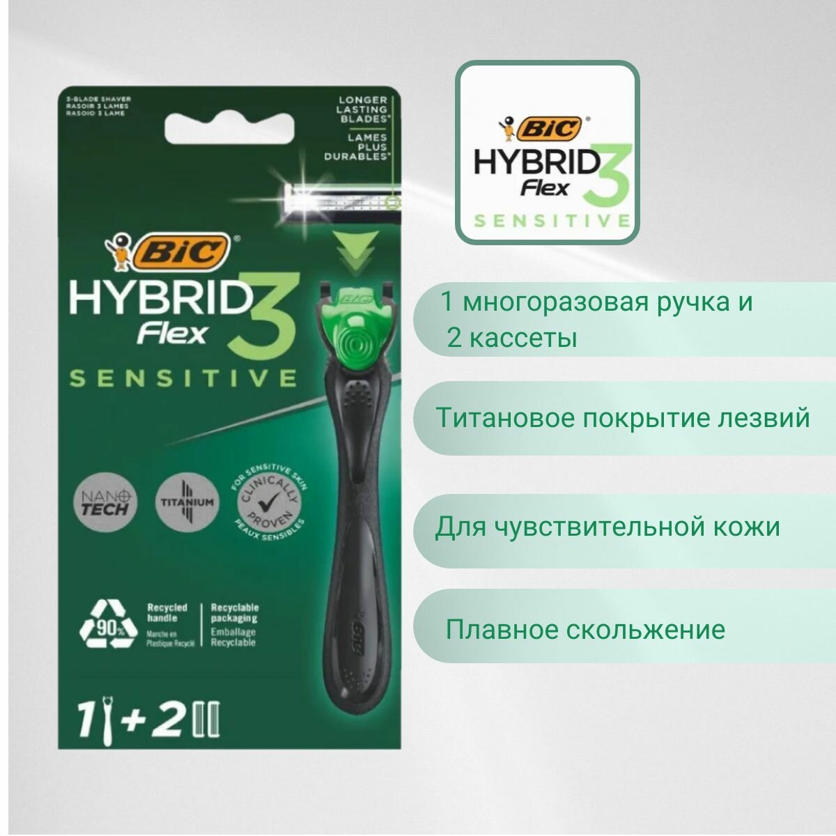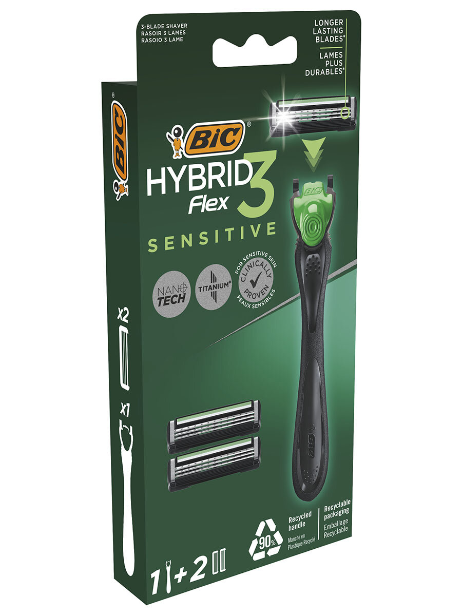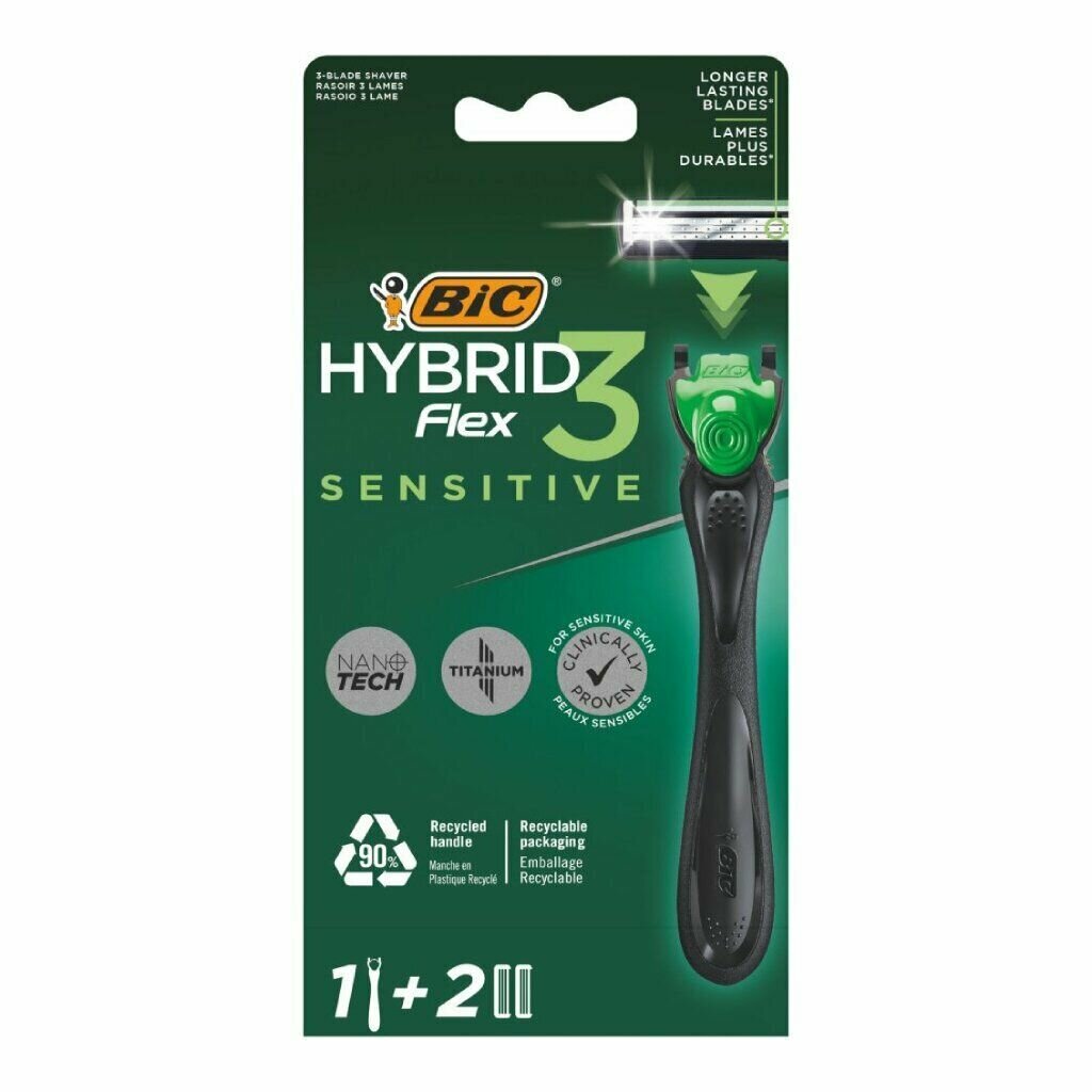| Комплектация | cтанок для бритья мужской BIC Hybrid 3 Flex Sensitive; 2 сменные кассеты с 3 лезвиями |