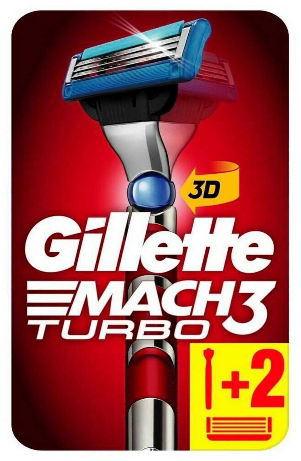 Бритвенный станок Gillette Mach3 Turbo 3D с 2 сменными кассетами
