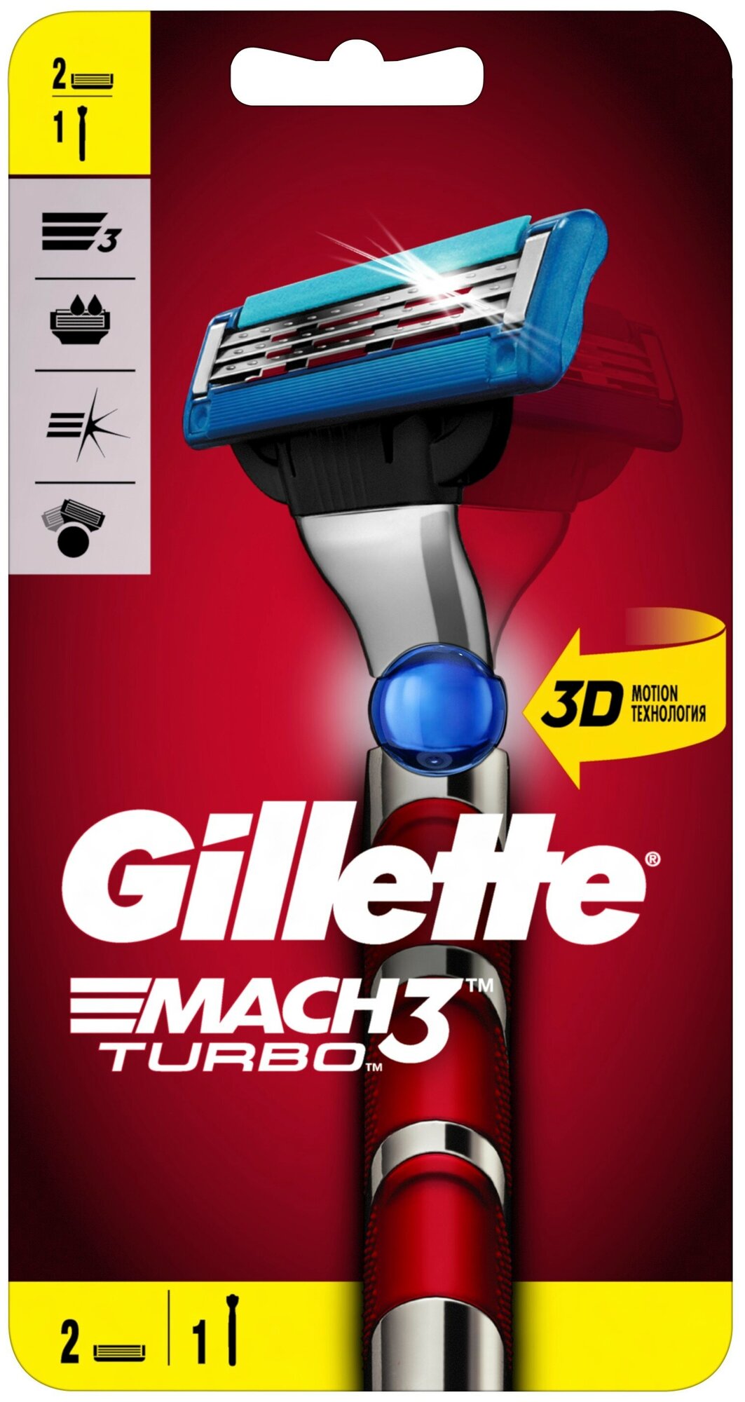Многоразовый бритвенный станок Gillette Mach3 Turbo технология 3D Motion, серебристый, 1 шт.