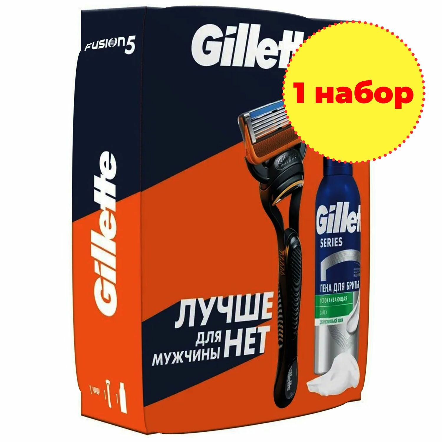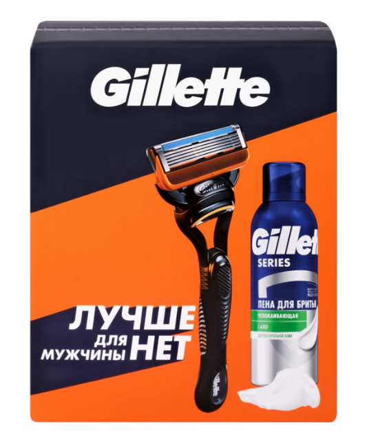 Купить Gillette Подарочный набор (Gillette Станок Fusion5 с 1 сменной кассетой + Gillette Пена для бритья успокаивающая, 200 мл.)