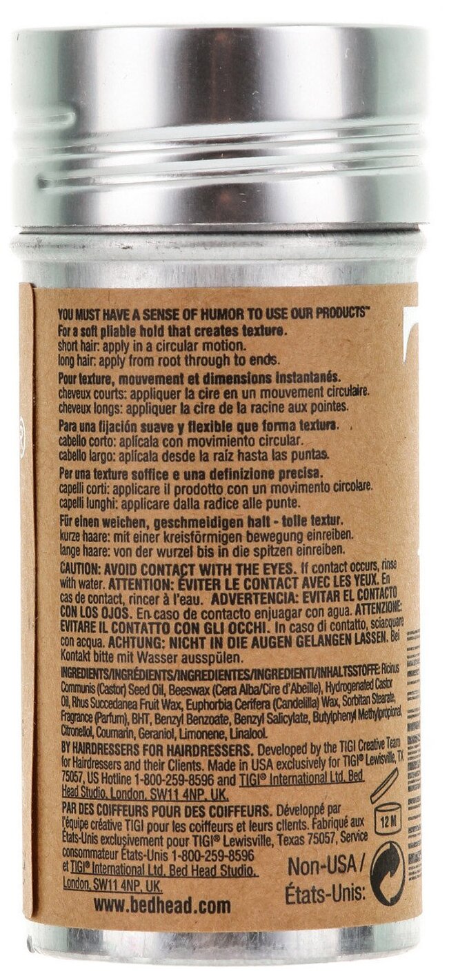 TIGI Bed Head Воск-Стик Wax Stick, Эластичная Мягкая Фиксация,Создающая Текстуру , 73 г
