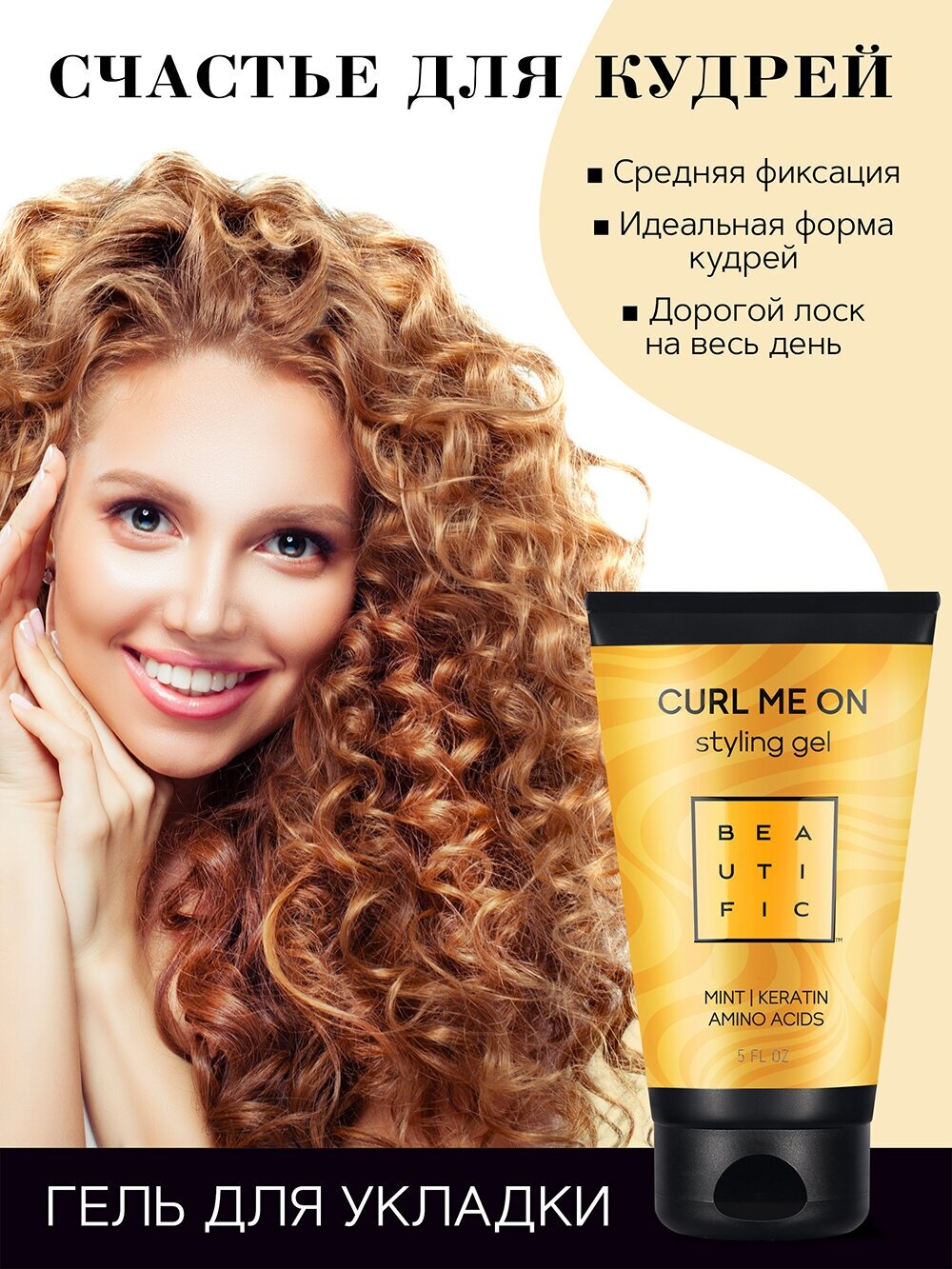 BEAUTIFIC Curl Me On Гель для укладки кудрявых и волнистых волос средней фиксации, 150 мл