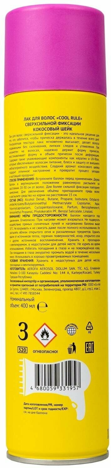 Купить Лак для волос COOL RULE сверхсильной фиксации "Кокосовый шейк", 400 мл