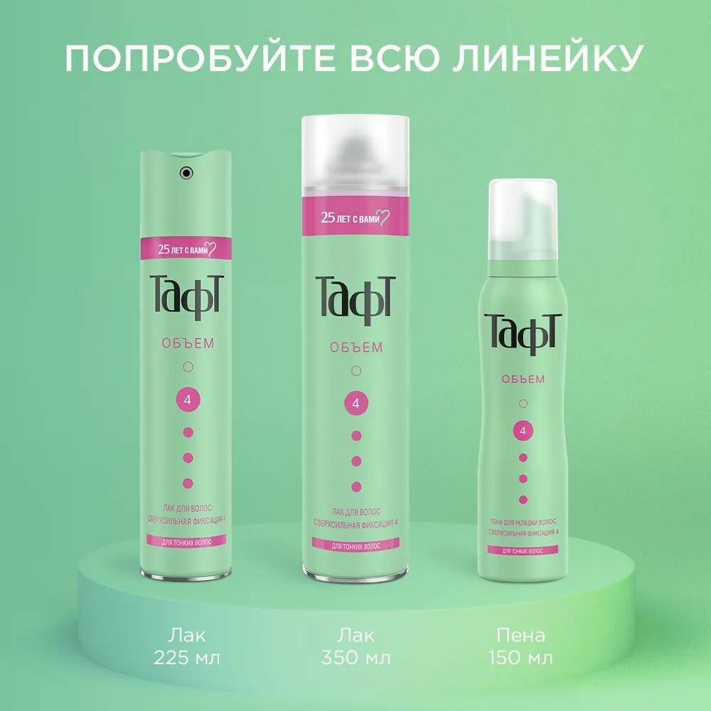 Тафт Лак для волос Объём, для тонких волос, сверхсильная фиксация 4, 350 мл