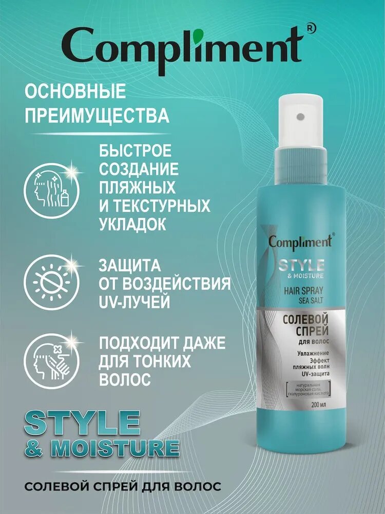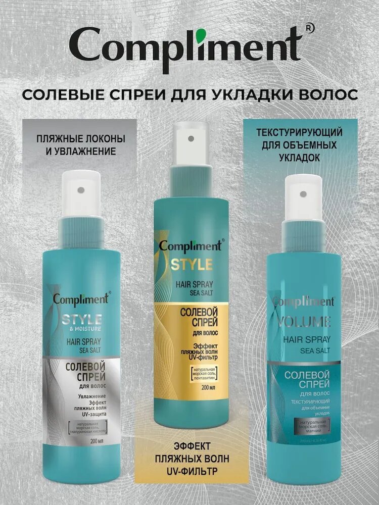 Compliment солевой спрей для укладки волос Пляжные локоны и увлажнение, 200мл интересное: