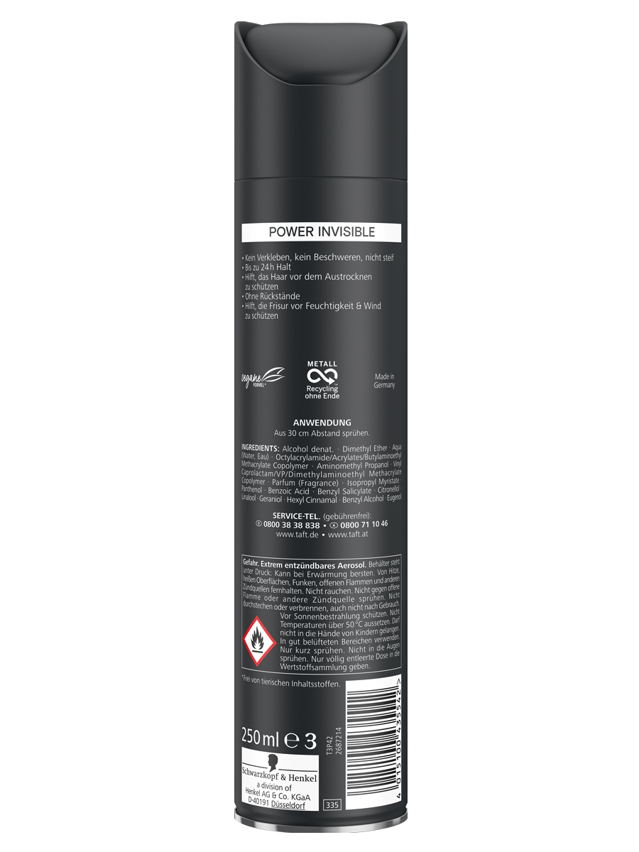 Тафт Лак для волос Power Невидимая фиксация, экстрасильная фиксация, 250 г, 225 мл