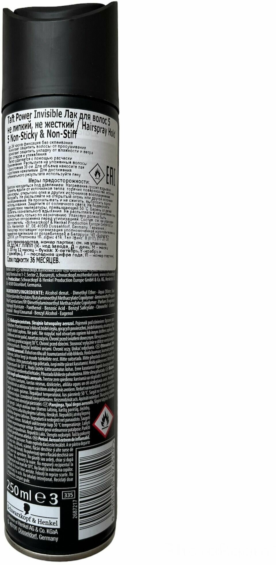 Taft Лак для волос Power Invisible Невидимая фиксация №5 Мегафиксация 250 мл