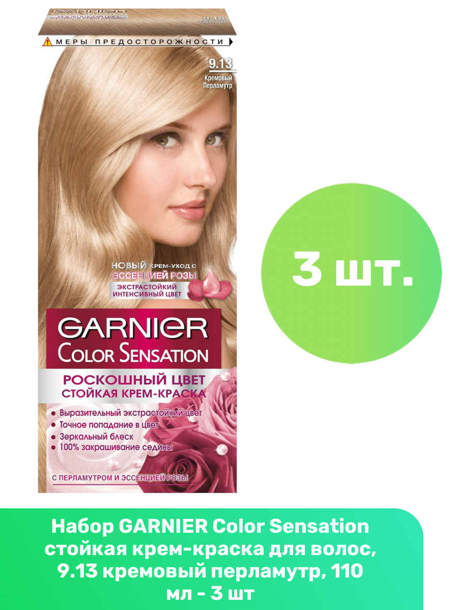 Купить Набор из 3 штук Краска для волос GARNIER Color Sensation 110мл 9.13 Кремовый перламутр