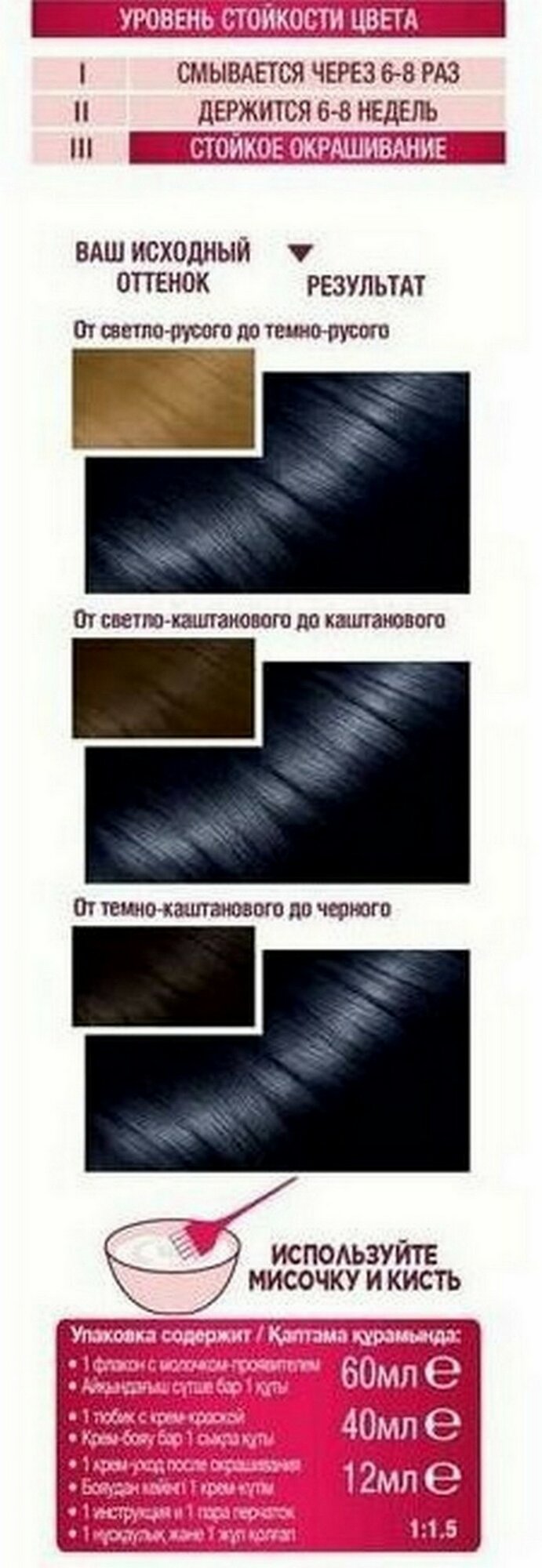 | Дополнительная информация | окислитель - 60 мл, краситель - 40 мл, крем-уод - 10 мл |