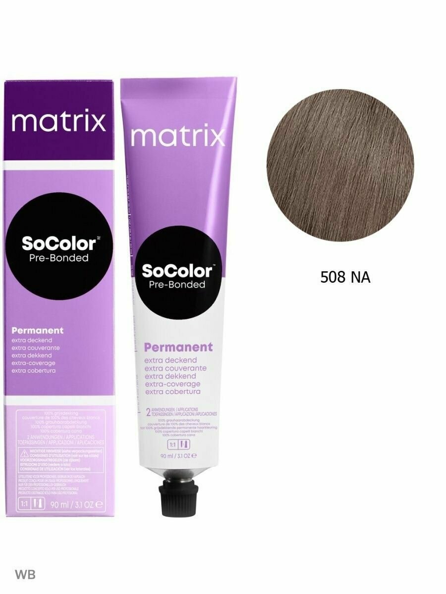 Matrix SoColor Pre-bonded стойкая крем-краска для седых волос Extra coverage, 508Na светлый блондин натуральный пепельный, 90 мл