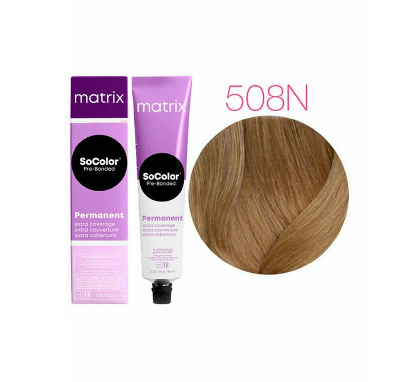 Matrix SoColor Pre-bonded стойкая крем-краска для седых волос Extra coverage, 508Na светлый блондин натуральный пепельный, 90 мл