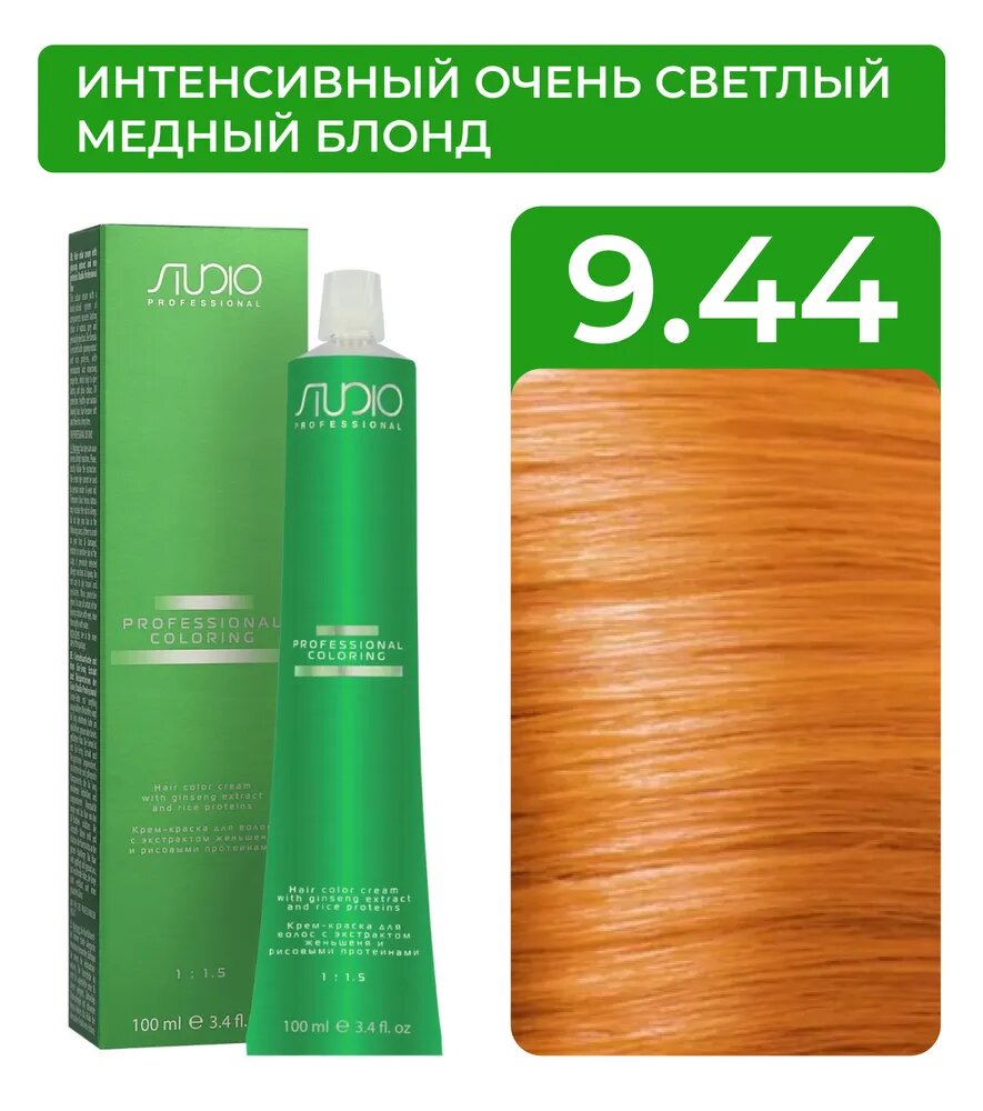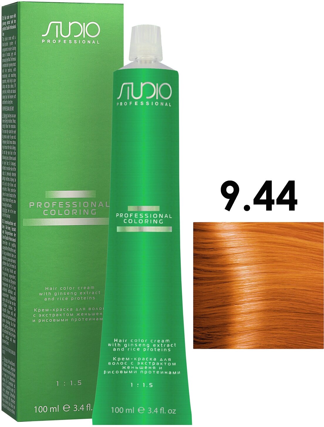 Kapous Studio Professional Крем-краска для волос Studio, тон №9.44, Очень светлый интенсивный медный блон с рисовыми протеинами и экстрактом женьшеня,