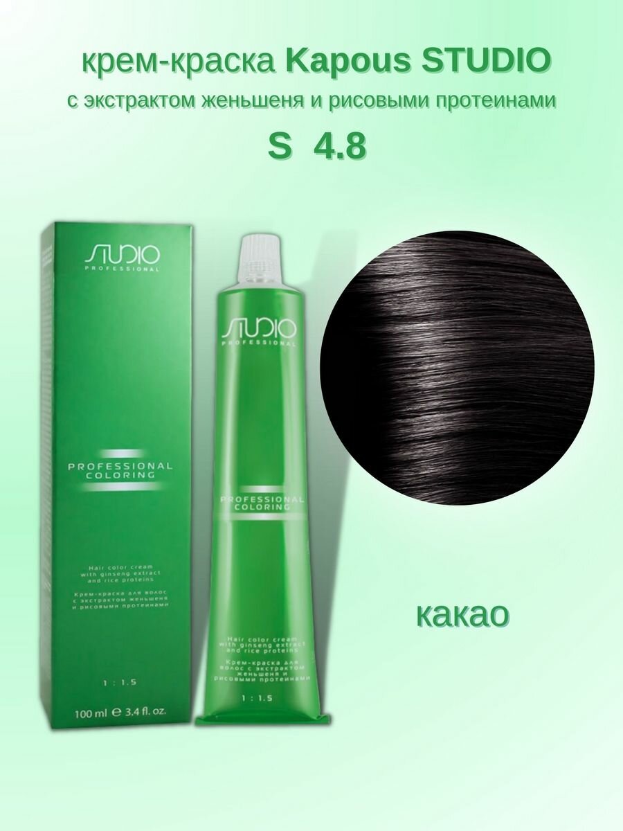 Kapous Studio Professional Крем-краска для волос с экстрактом женьшеня и рисовыми протеинами, 4.8 Какао, 100 мл