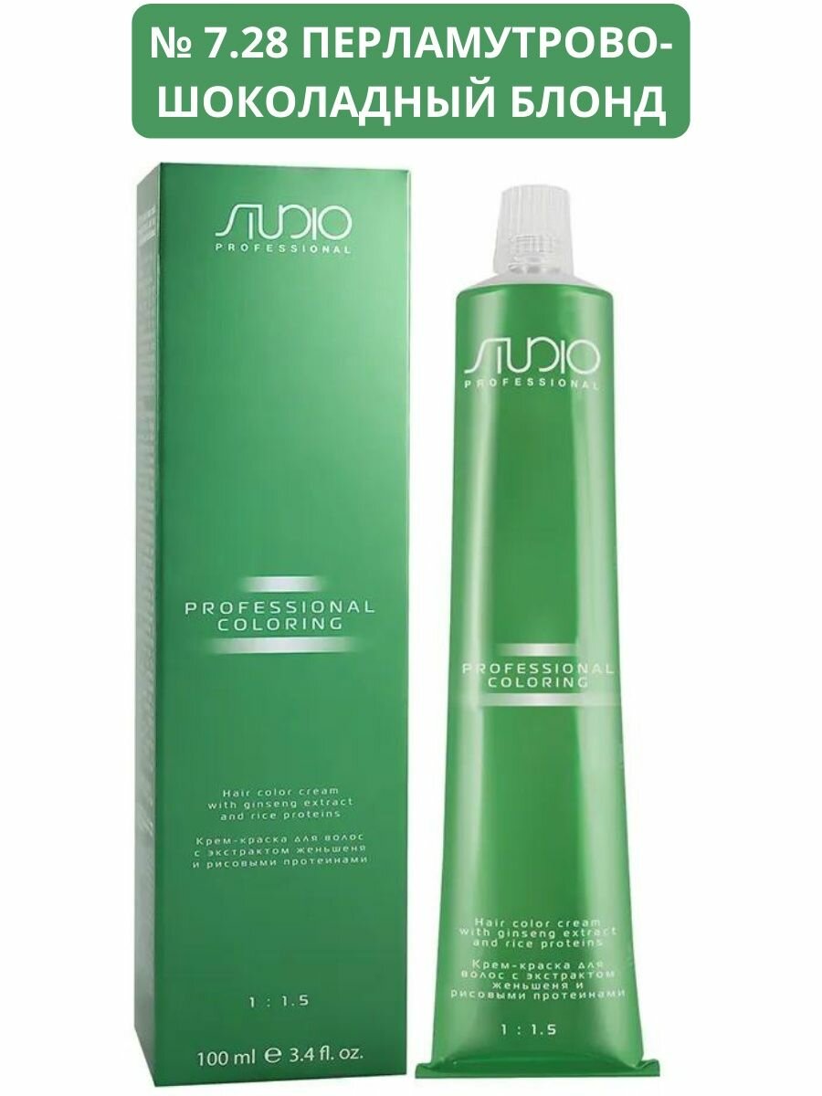 Kapous Studio Professional Крем-краска для волос Studio, тон №7.28 Перламутрово-шоколадный блонд, с рисовыми протеинами и экстрактом женьшеня, 100 мл