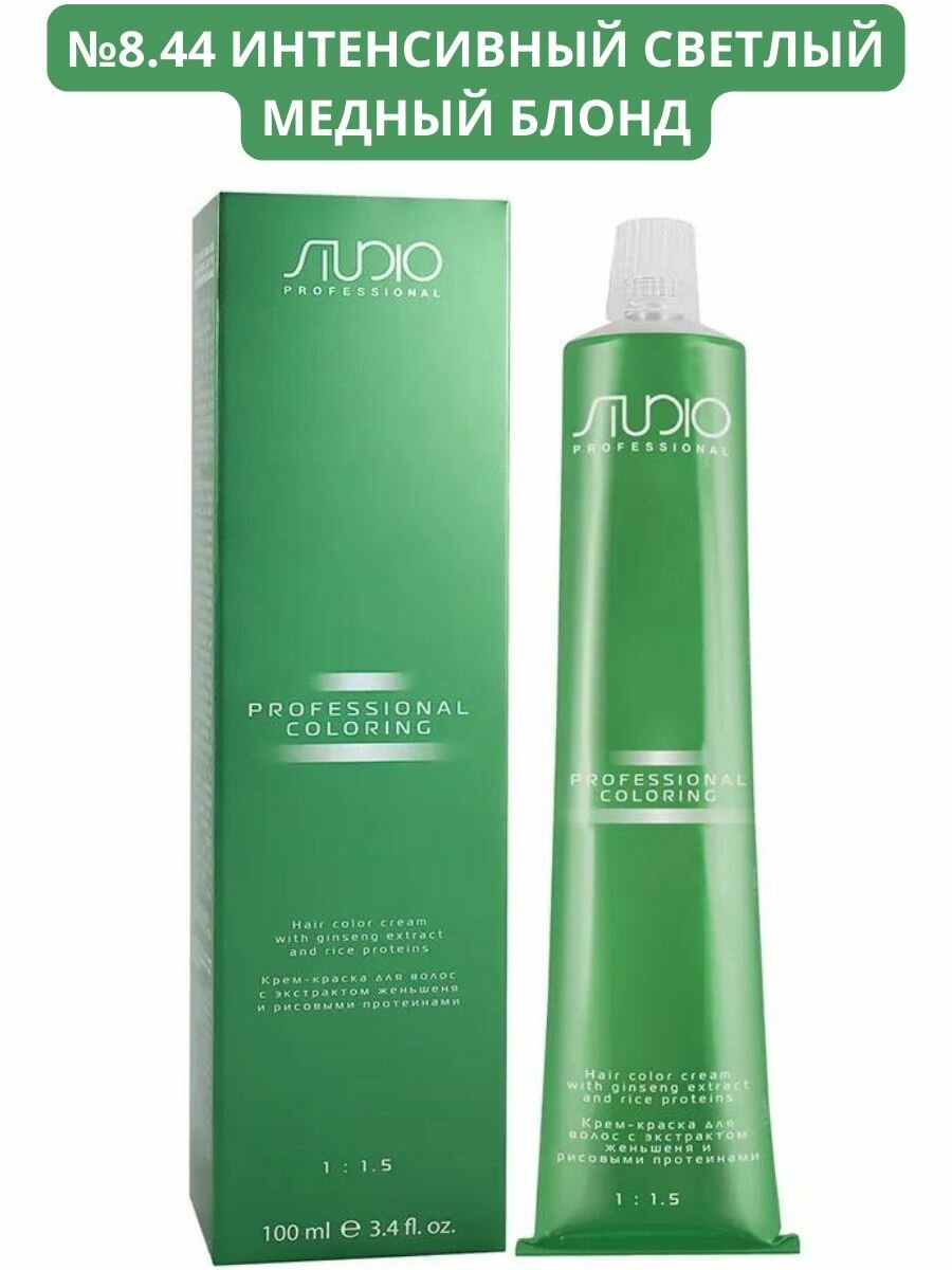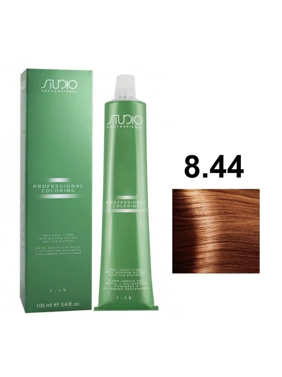 Kapous Studio Professional Крем-краска для волос Studio, тон №8.44, Светлый интенсивный медный блонд, с рисовыми протеинами и экстрактом женьшеня, 100