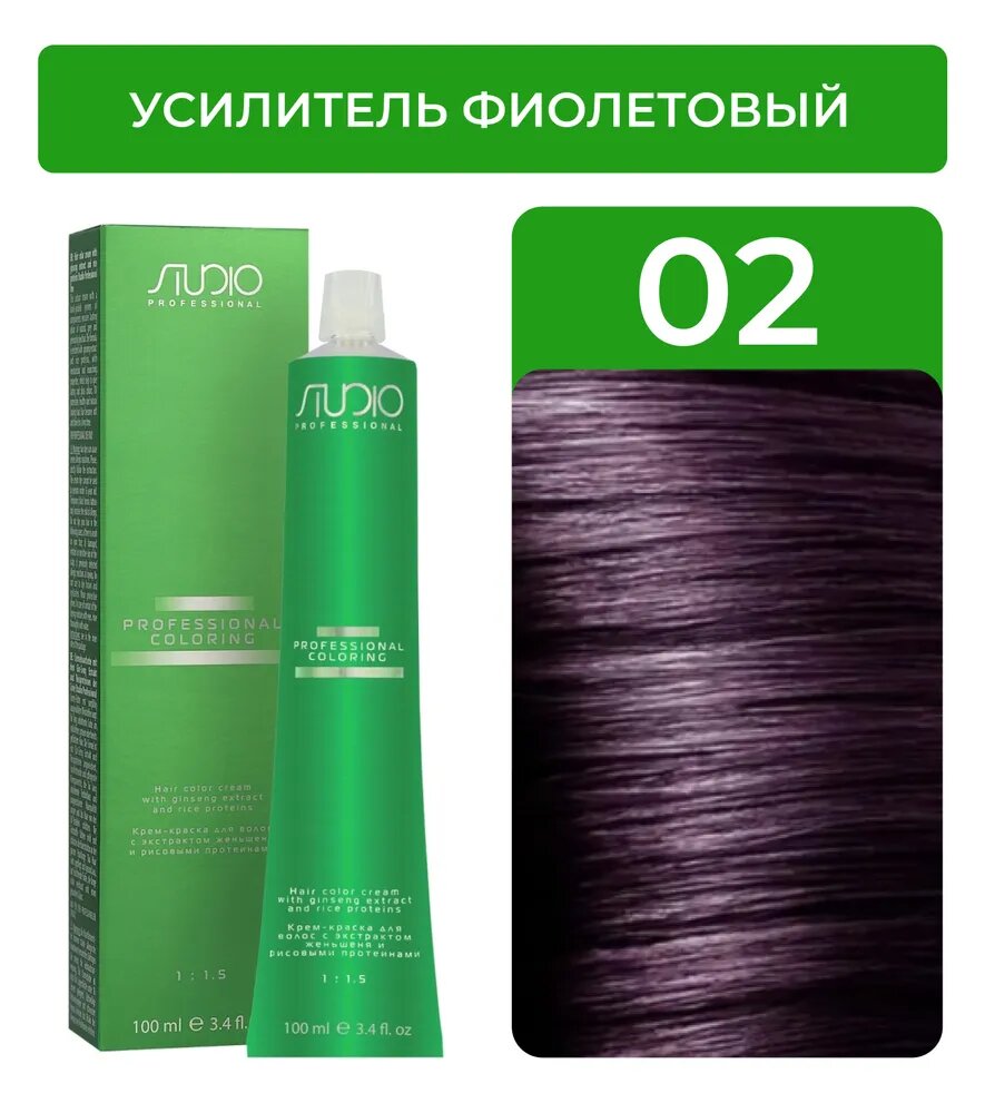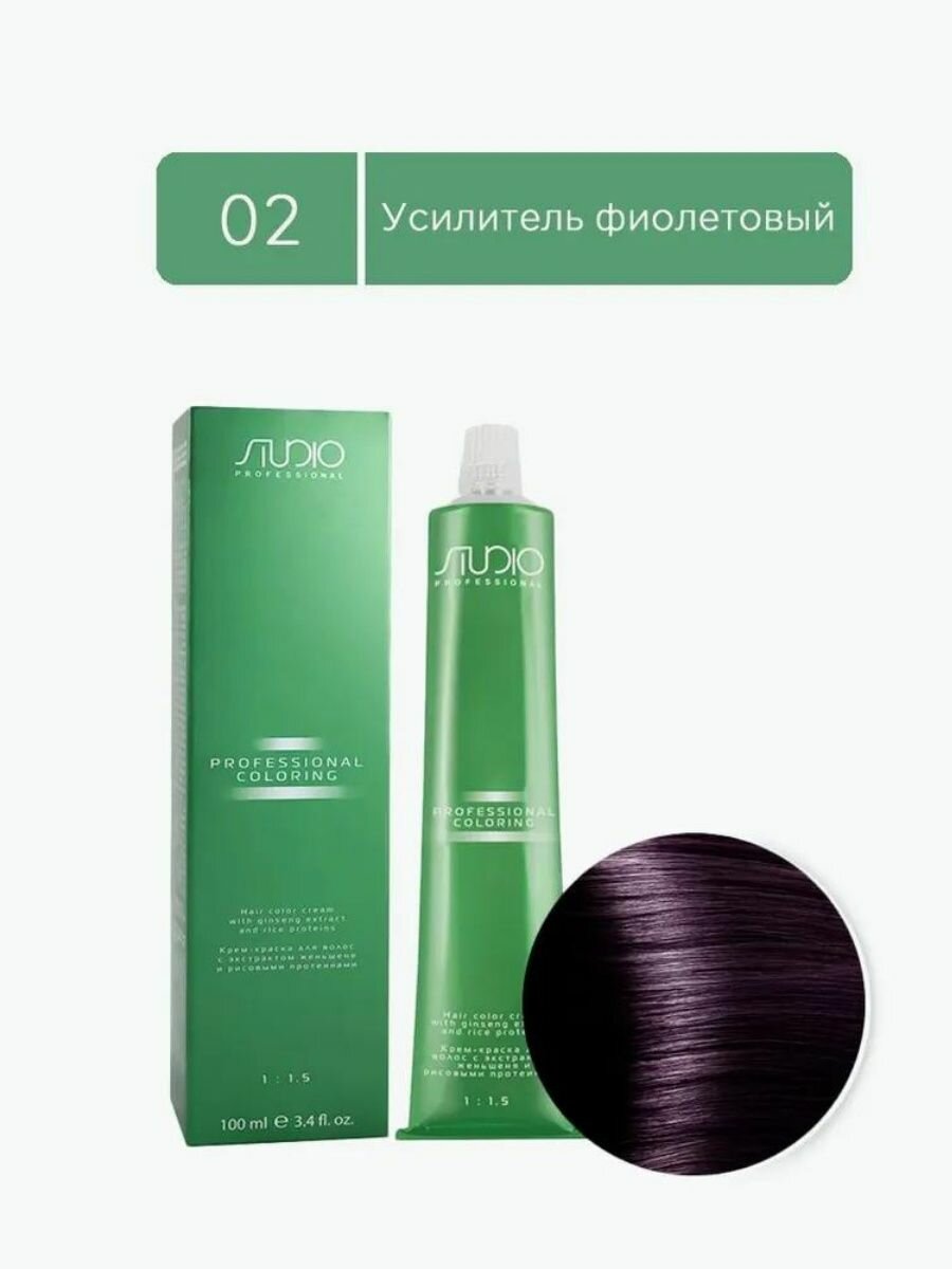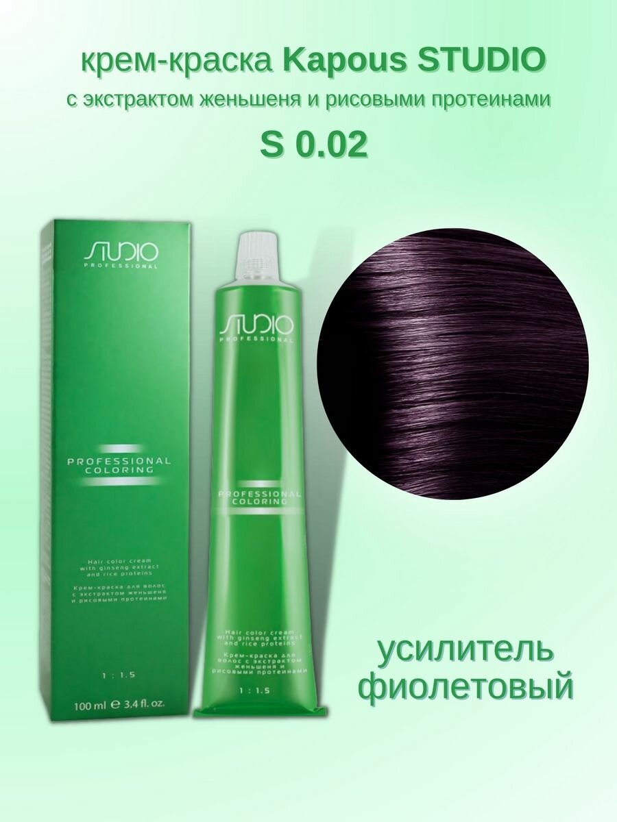 Kapous Studio Professional Крем-краска для волос Studio, усилитель цвета, с рисовыми протеинами и экстрактом женьшеня, тон №02, Фиолетовый, 100 мл