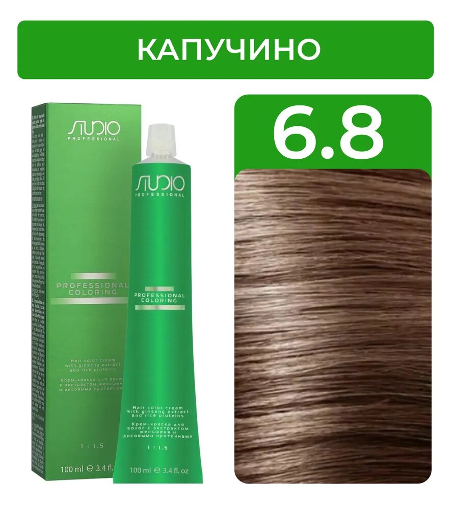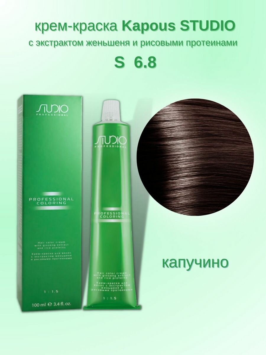 Крем-краска для волос с экстрактом женьшеня и рисовыми протеинами Kapous Studio Professional, 6.8 капучино, 100 мл
