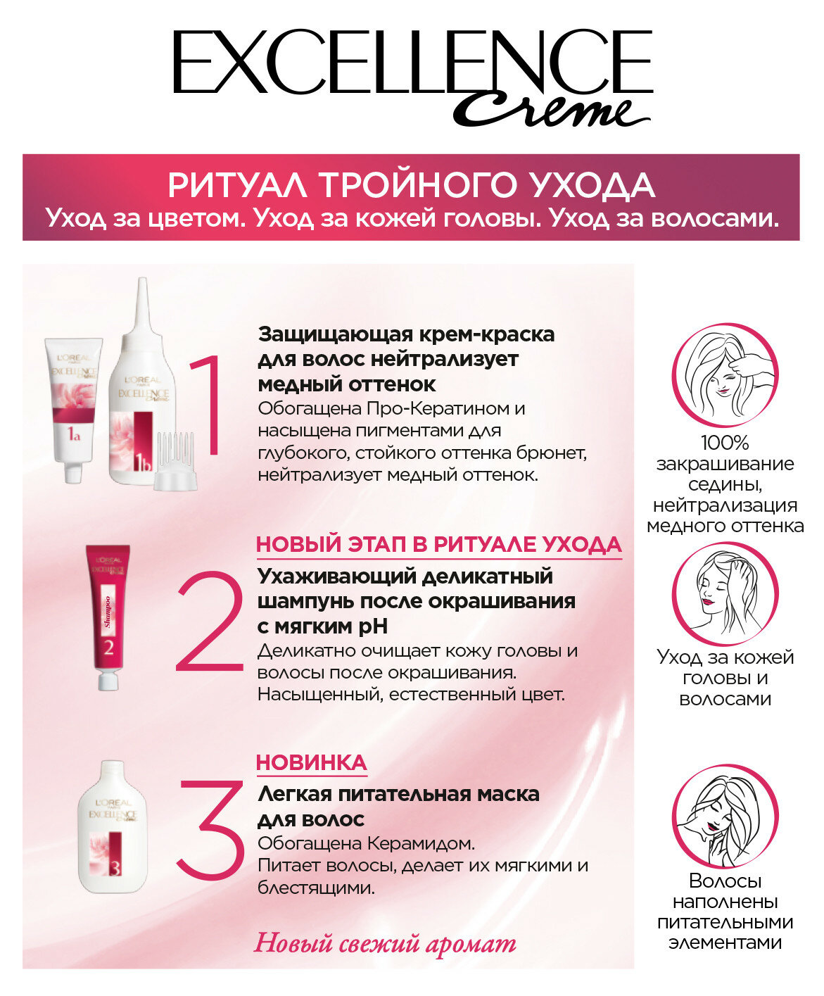 L'Oreal Paris Excellence стойкая крем-краска для волос, 1.00 Черный - 1 шт