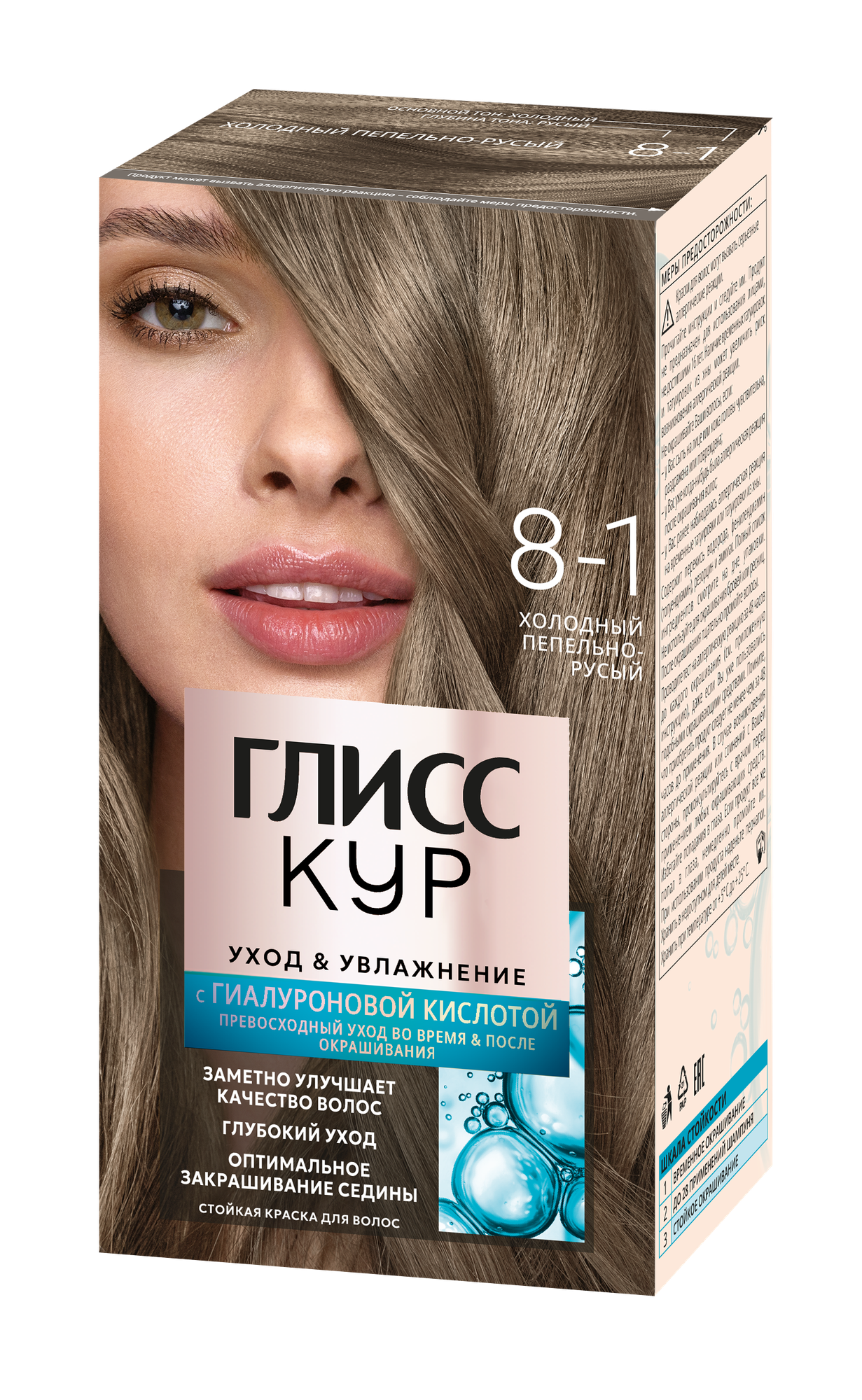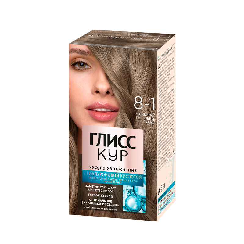 Глисс Кур Уход & Увлажнение Стойкая краска для волос, 8-1 холодный пепельно-русый, 143 мл