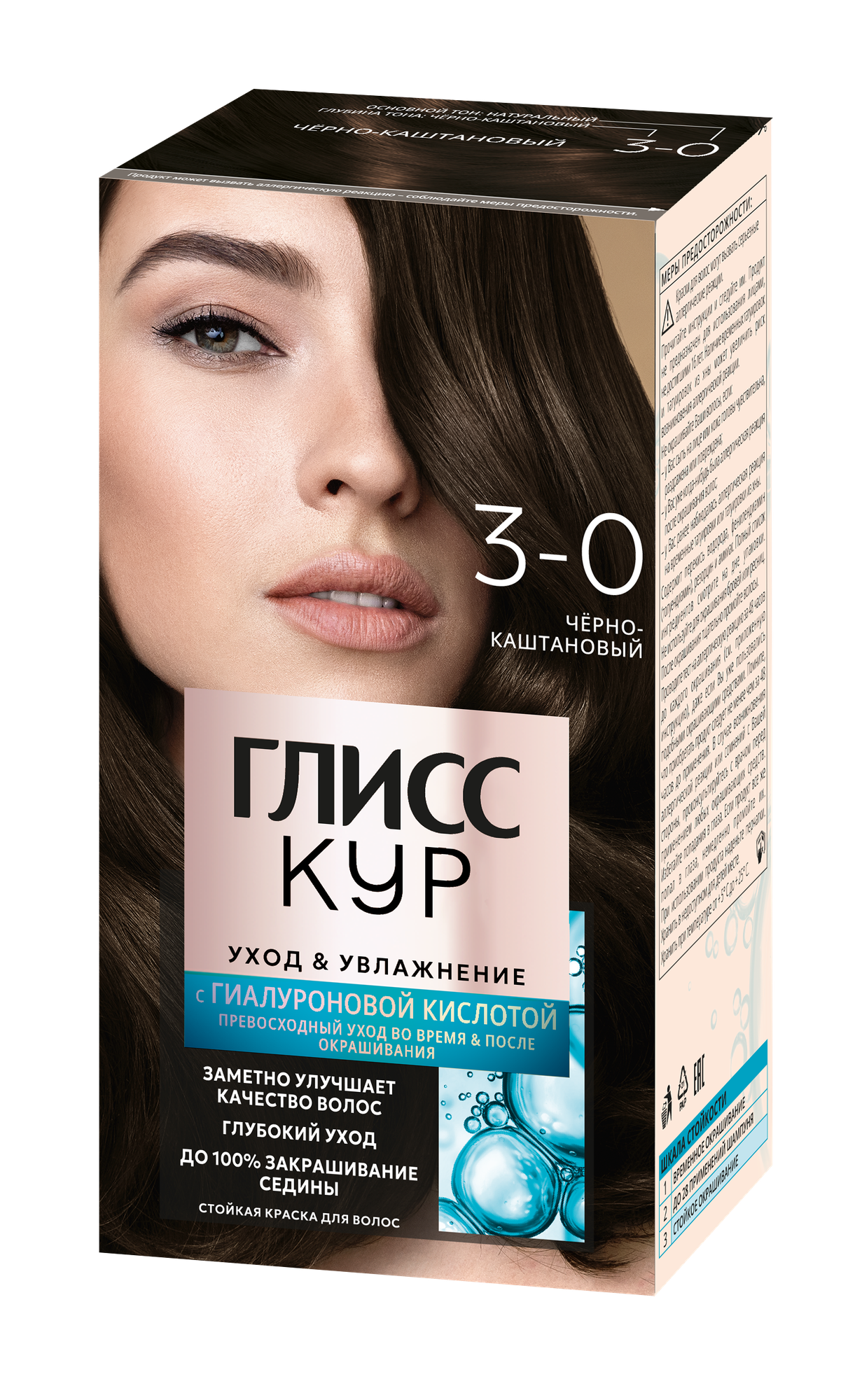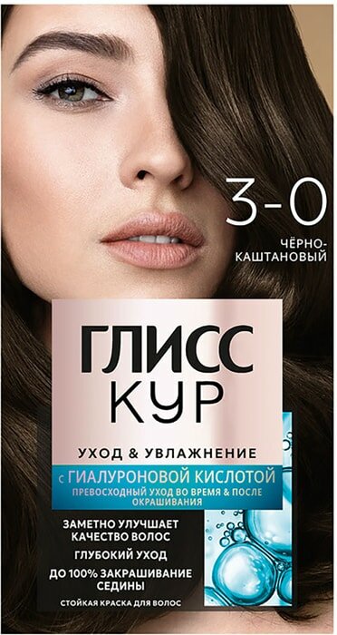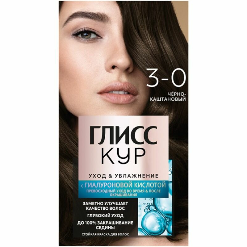 Краска для волос Глисс Кур черно-каштановый 3-0, 143 мл