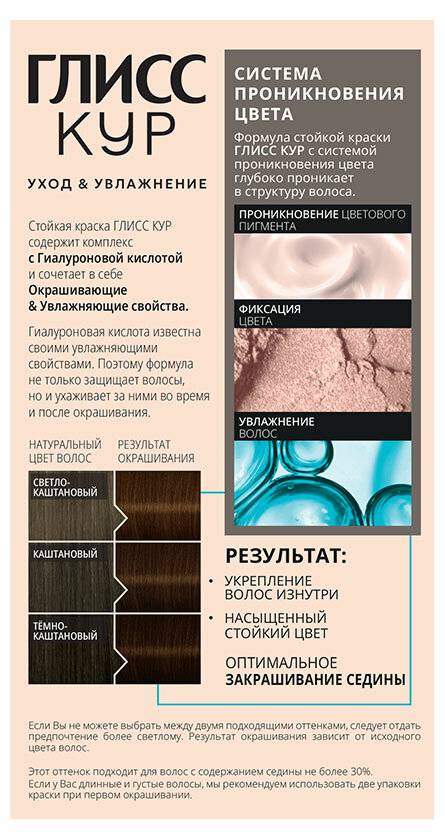 Глисс Кур Стойкая краска для волос Уход & Увлажнение, 6-0 Светло-каштановый, 135 мл