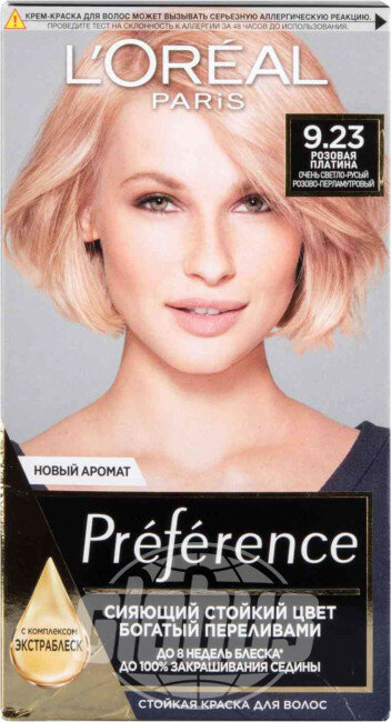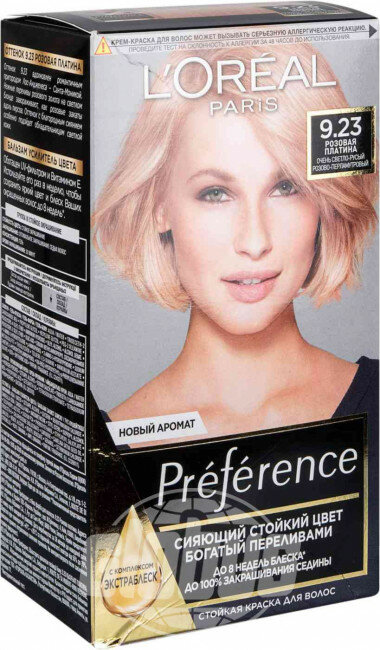L'Oreal Preference Стойкая краска для волос, оттенок 9.23, Розовая Платина