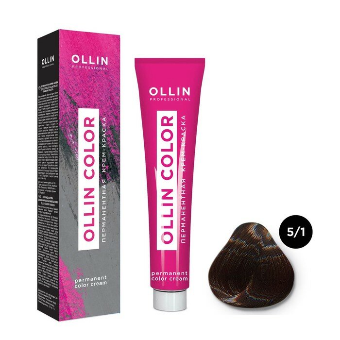 Купить OLLIN COLOR перманентная крем-краска для волос 5/1 светлый шатен пепельный, 60мл.