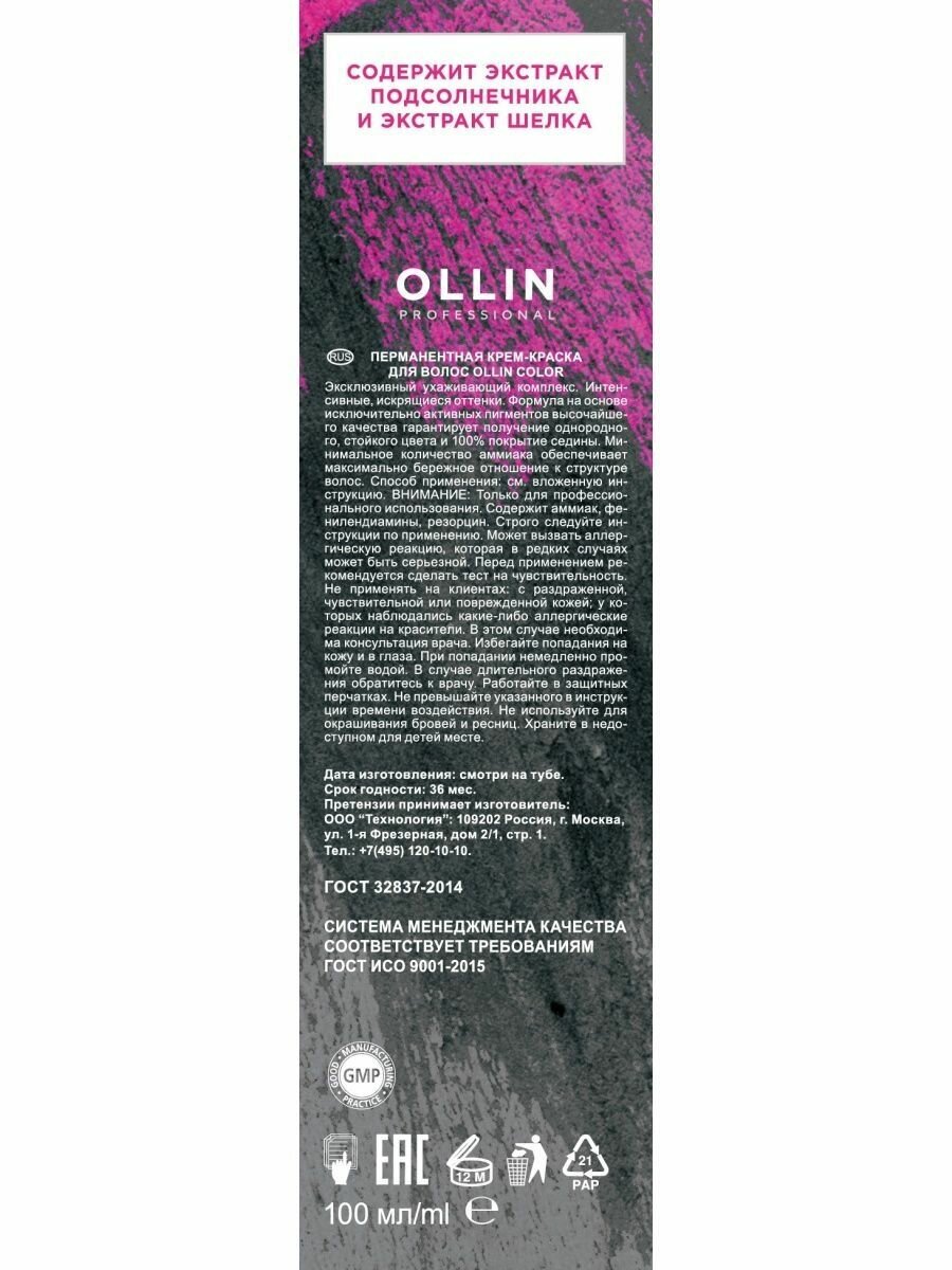 Ollin Color - Оллин Колор Стойкая крем-краска для волос, 60 мл - Оллин Колор 11/21 Специальный блондин фиолетово-пепельный