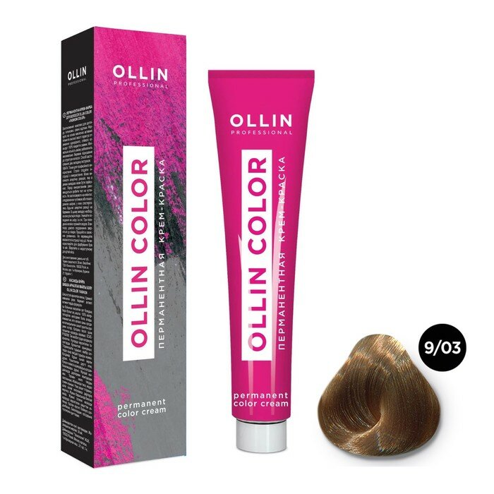 Купить OLLIN COLOR перманентная крем-краска для волос 9/03 блондин прозрачно-золотистый, 60мл.